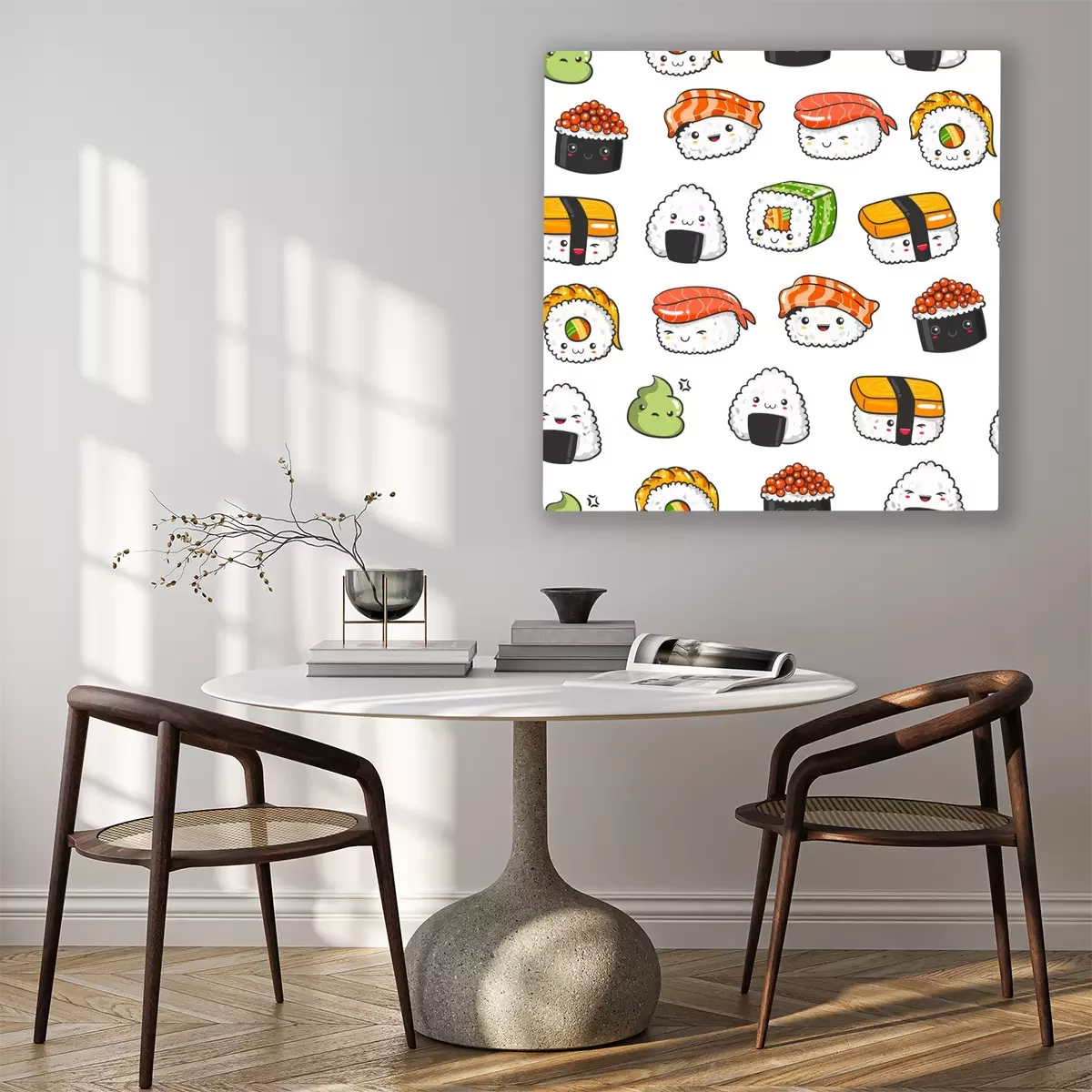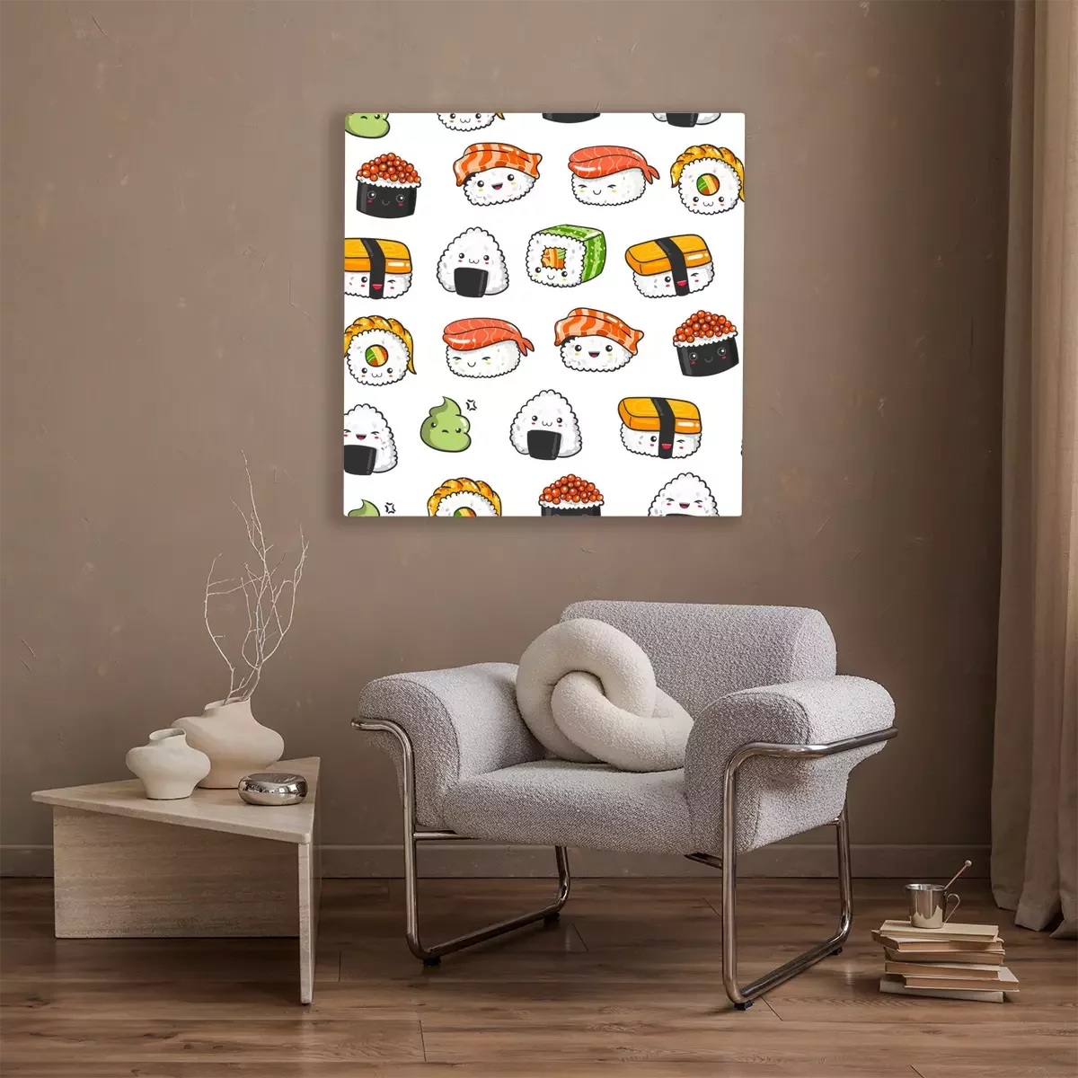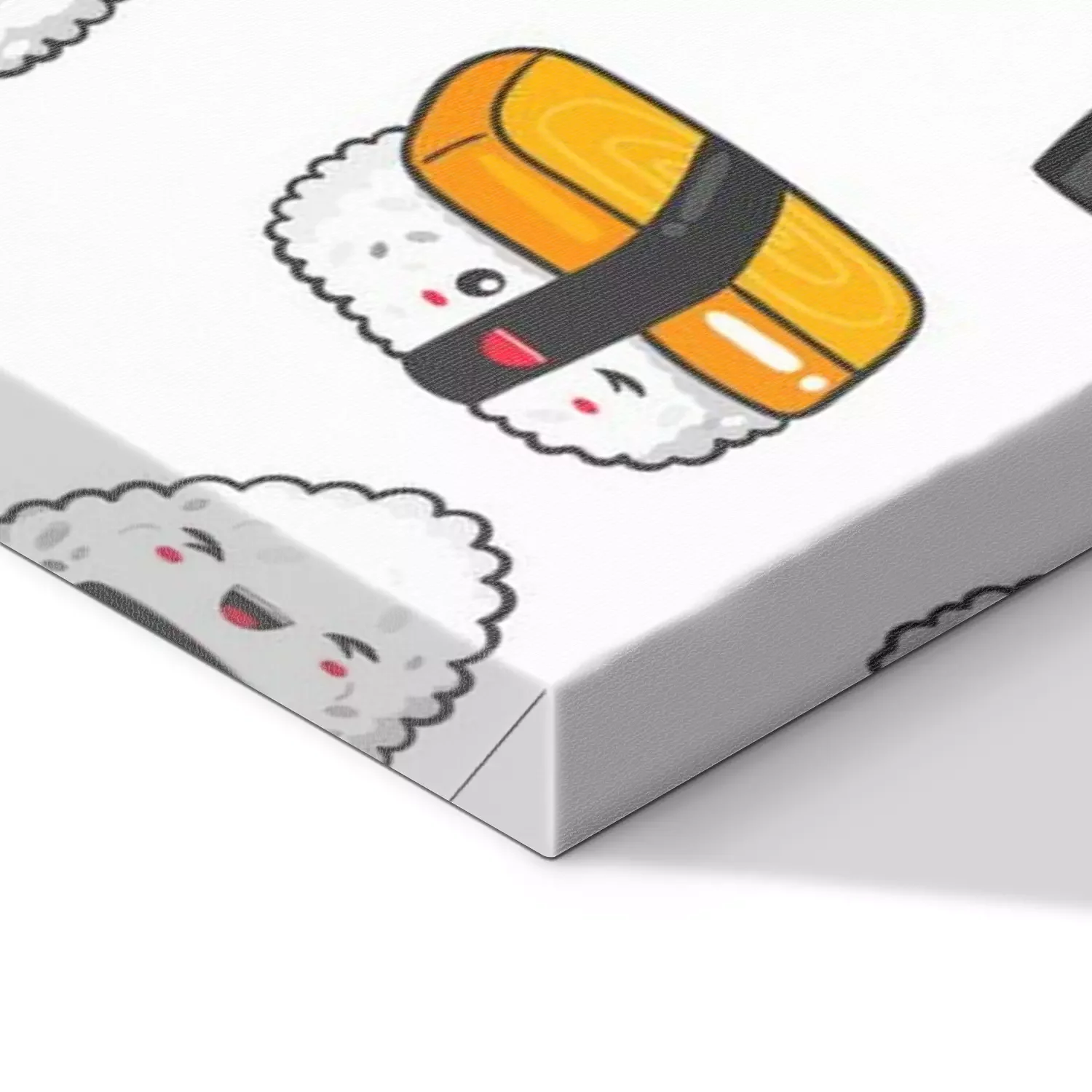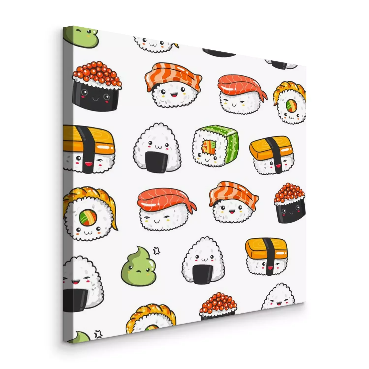 Canvas: Hand getrokken verschillende kawaii sushi. Gekleurd vector naadloos patroon