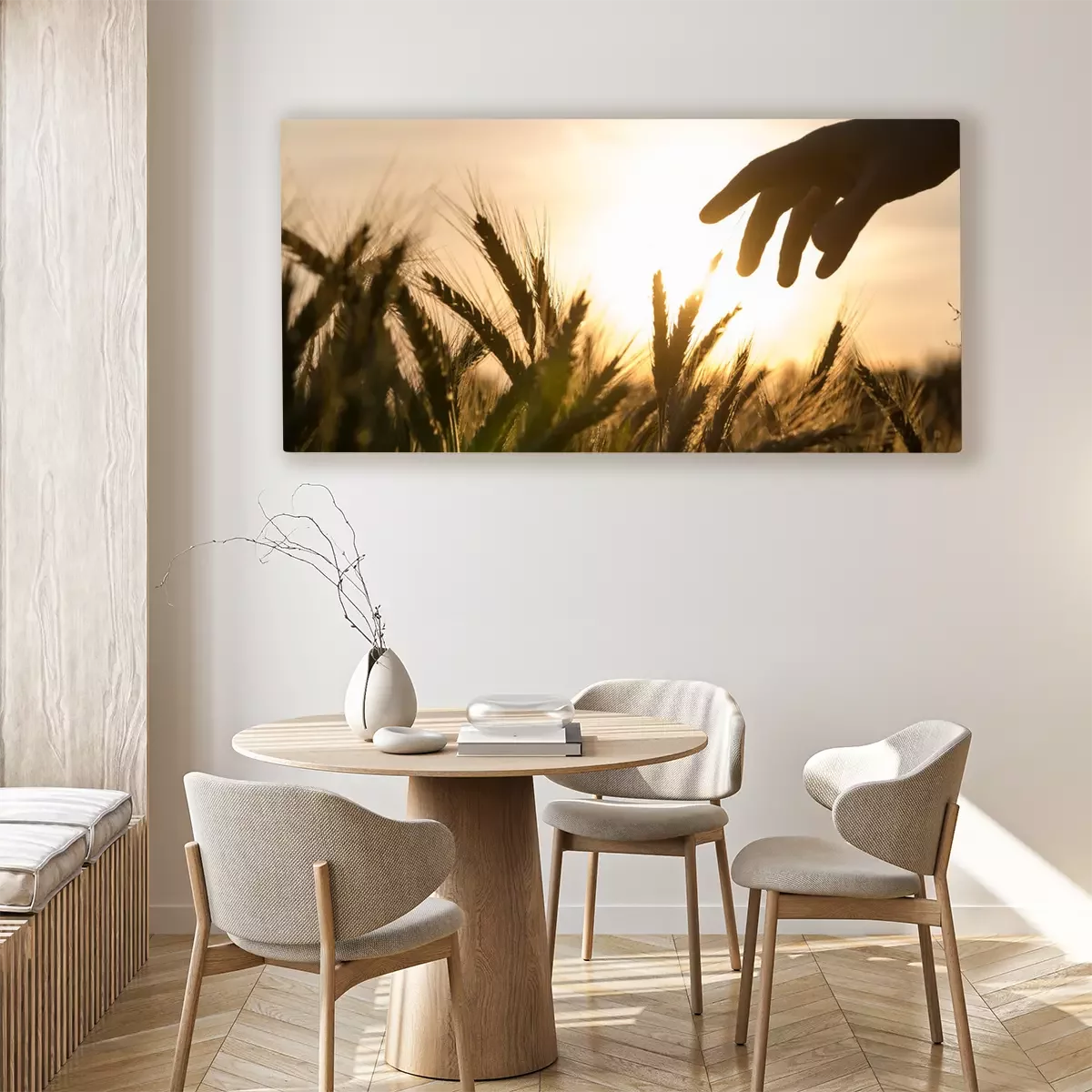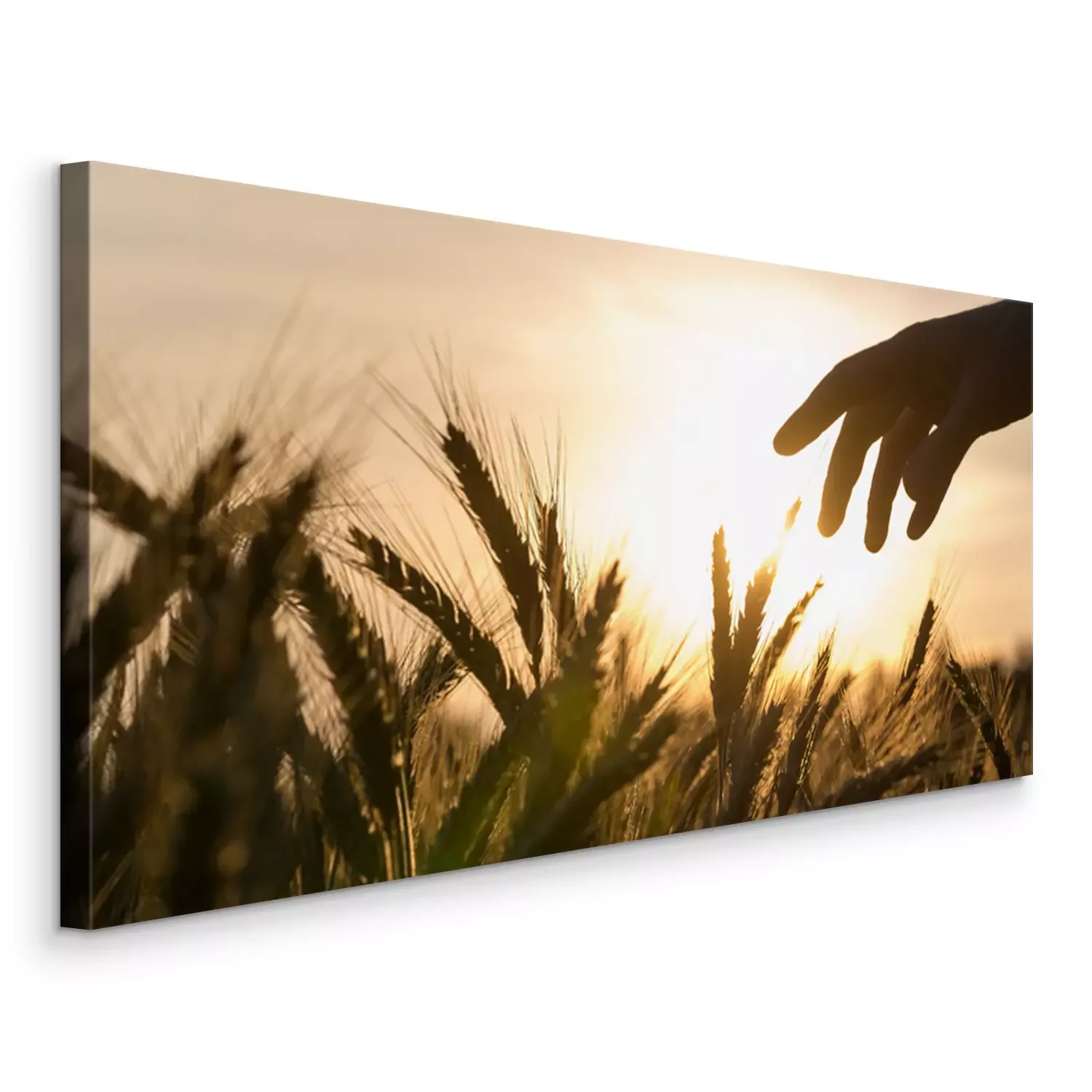 Canvas: Hand van een landbouwer raken tarweveld