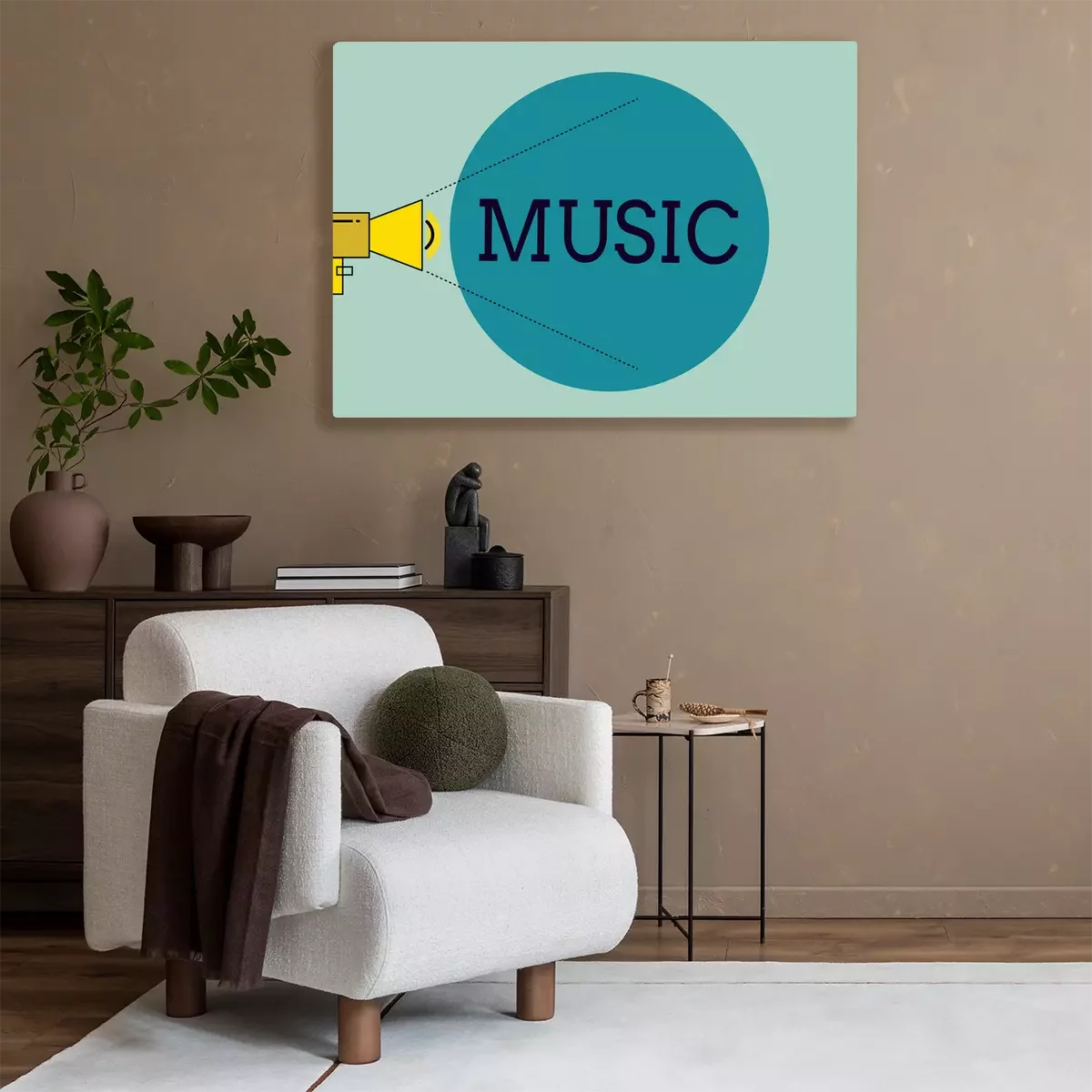 Canvas: Handwriting text writing Music. Concept meaning vocal or instrumental sounds in such way to produce beauty form.