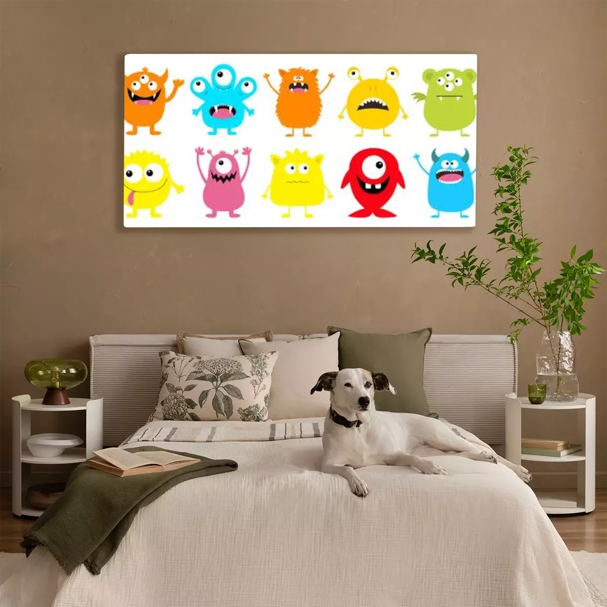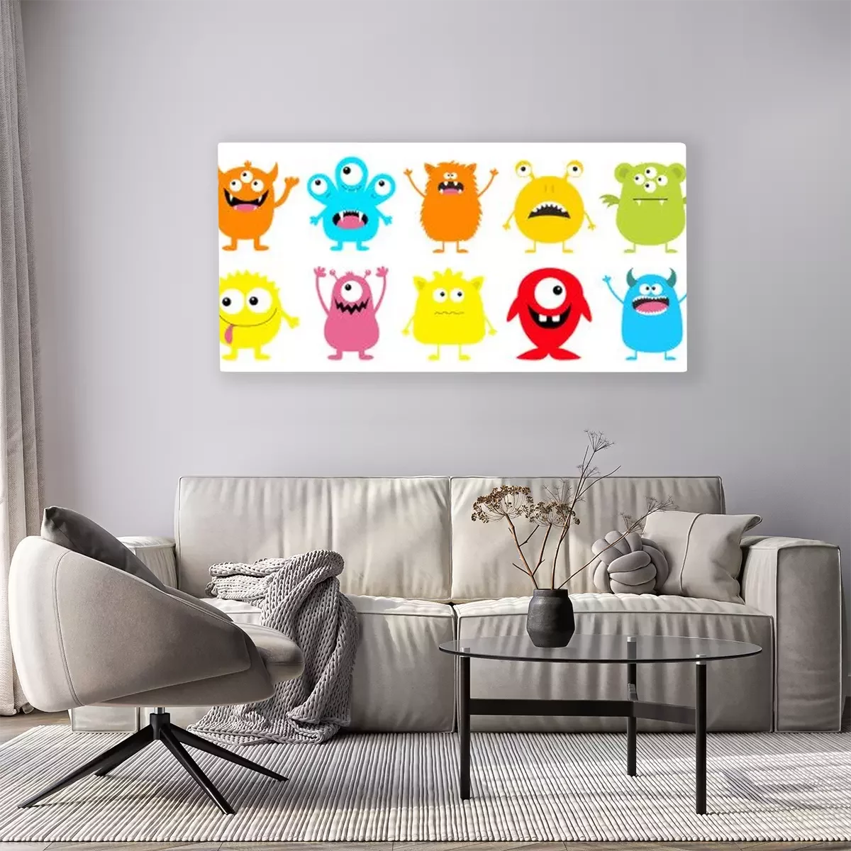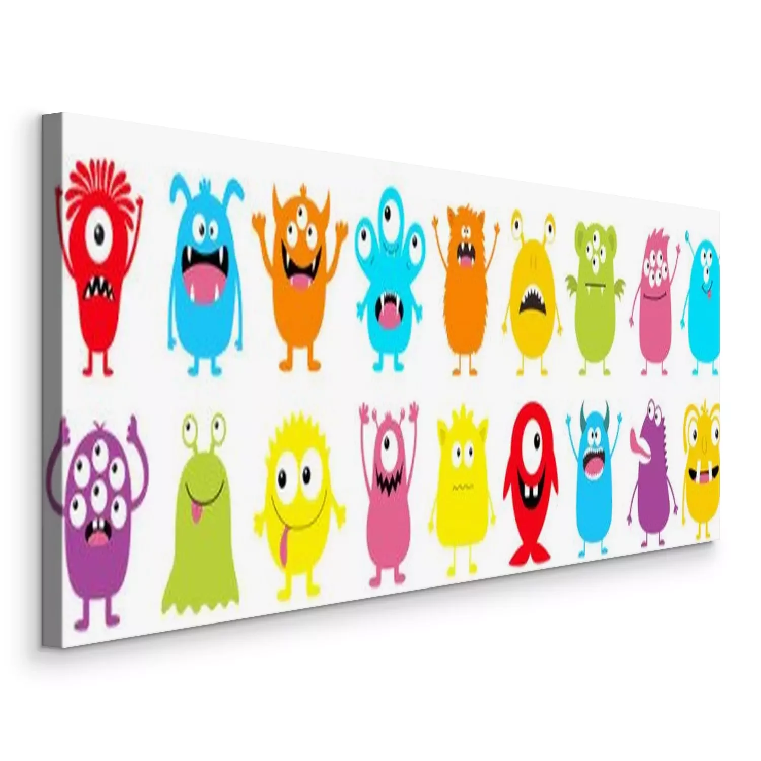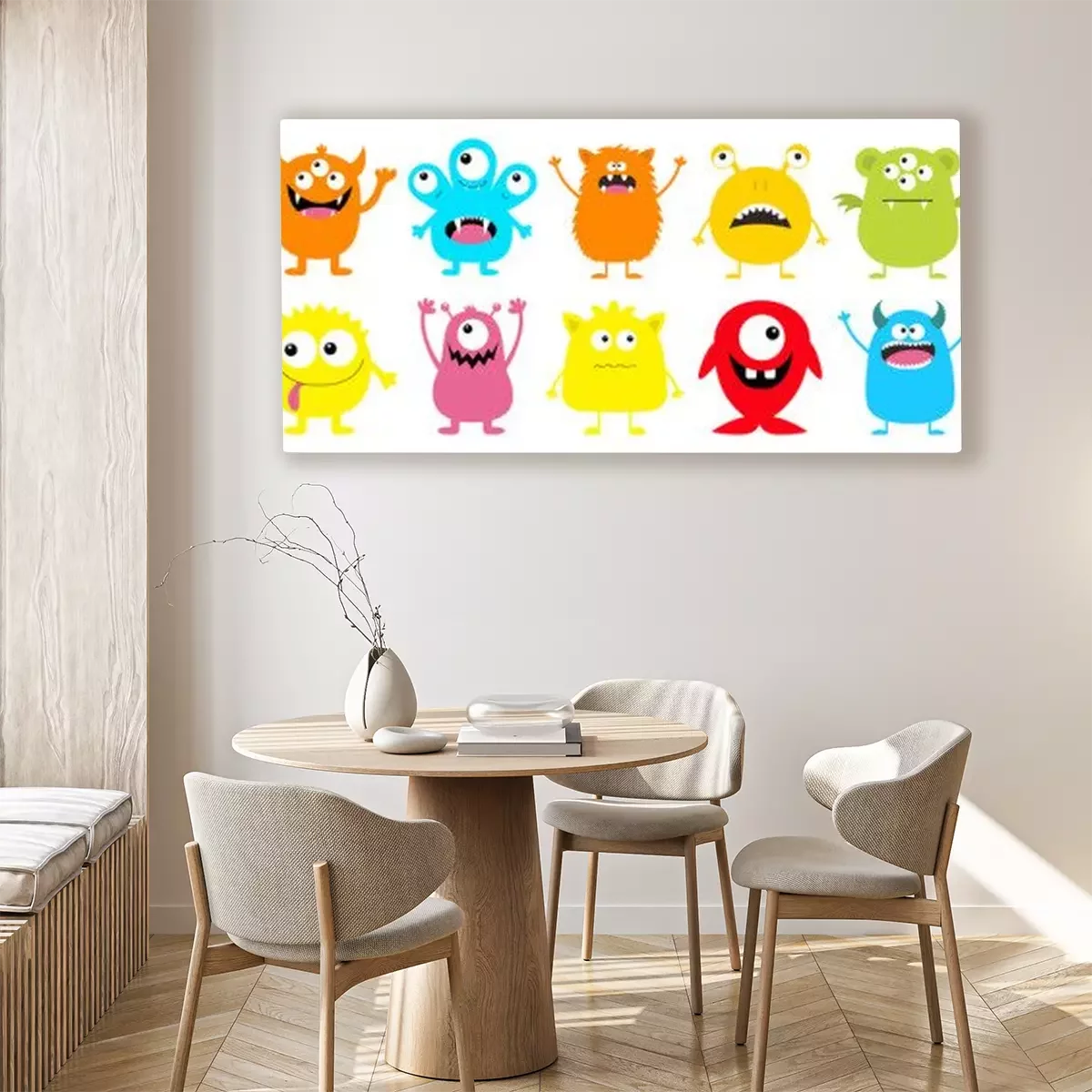 Canvas Happy Halloween. Monster colorful round silhouette icon super big set line. Eyes, tongue, tooth fang, hands up. Cute cartoon kawaii scary funny baby character.White background. Flat design.