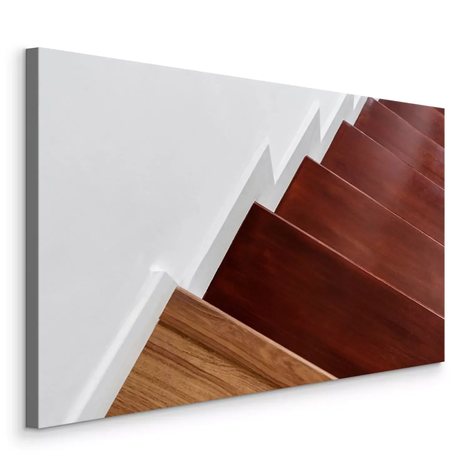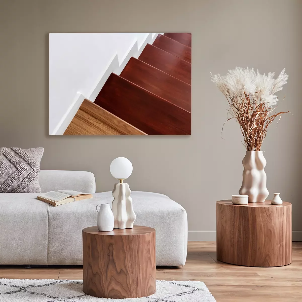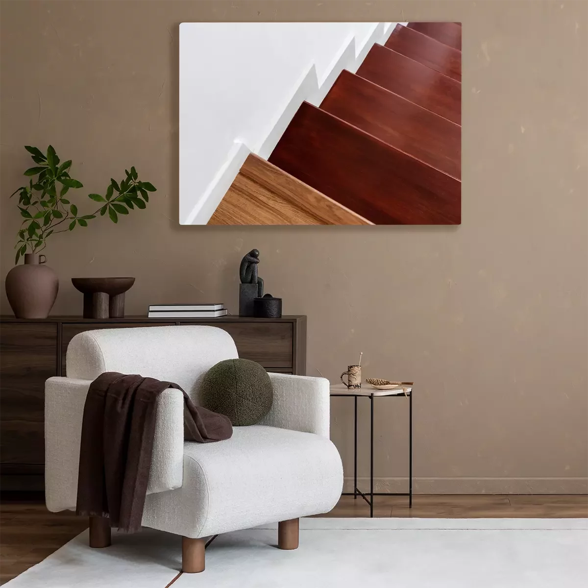 Canvas: Hardhouten traptreden en witte muur, trappenhuismateriaal en huisontwerp