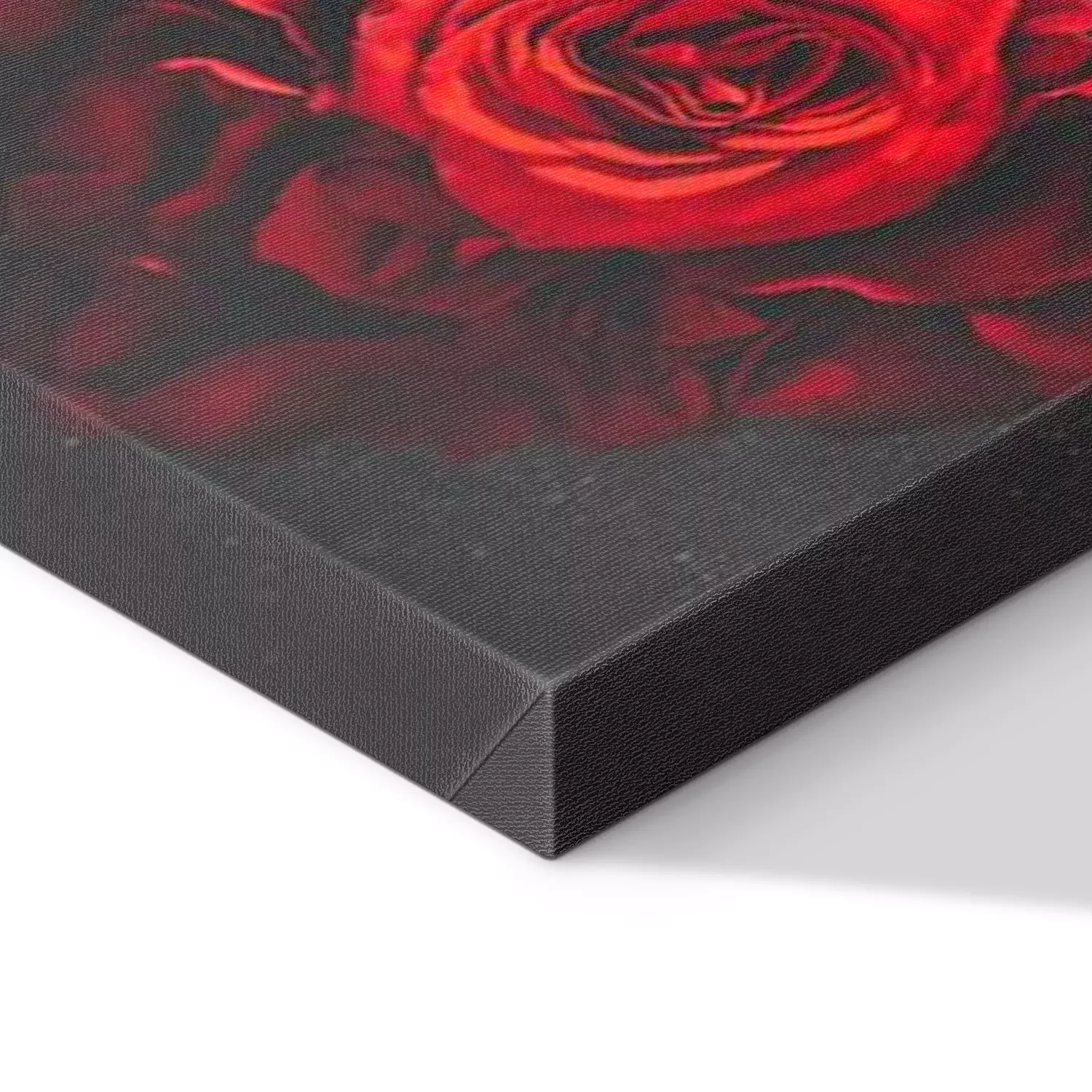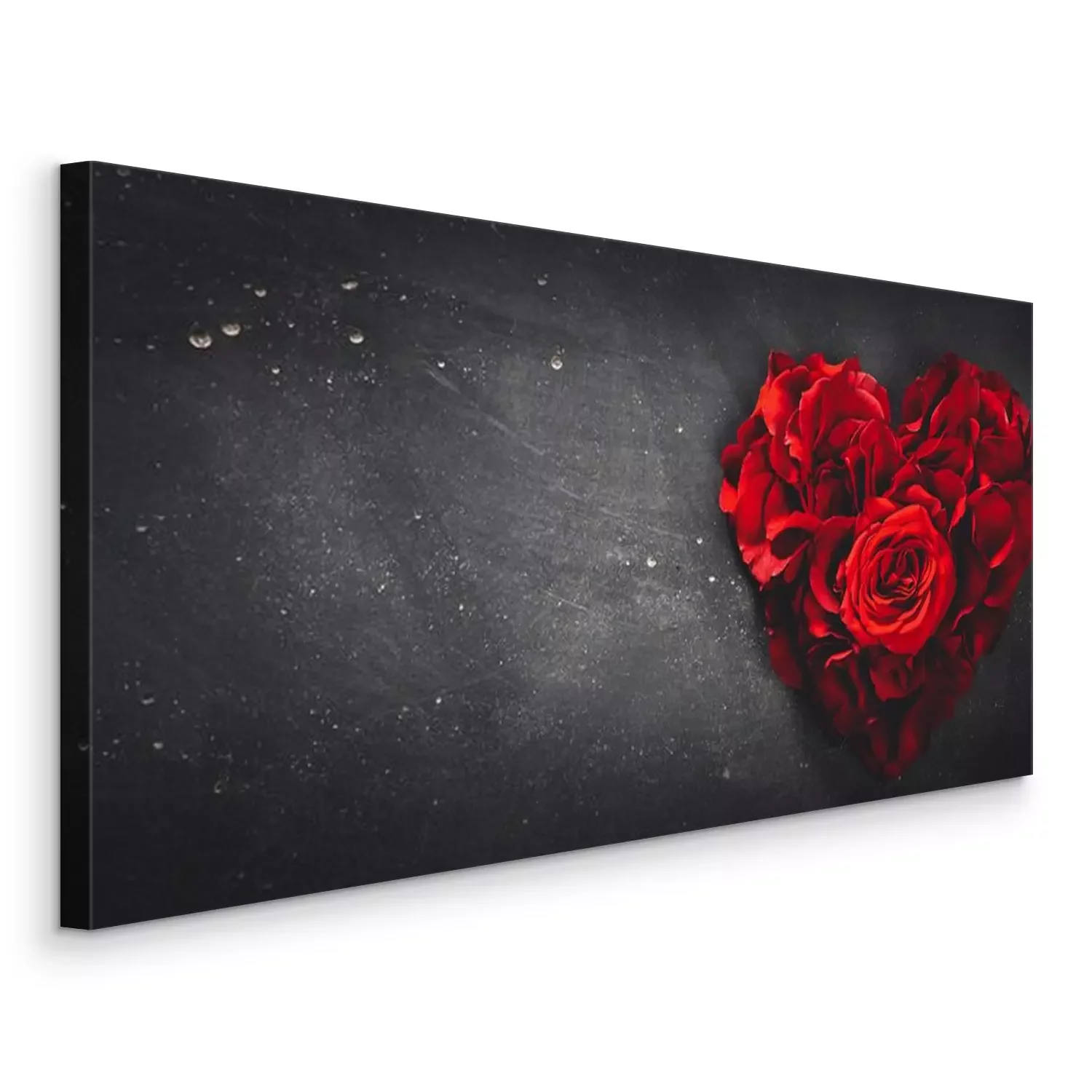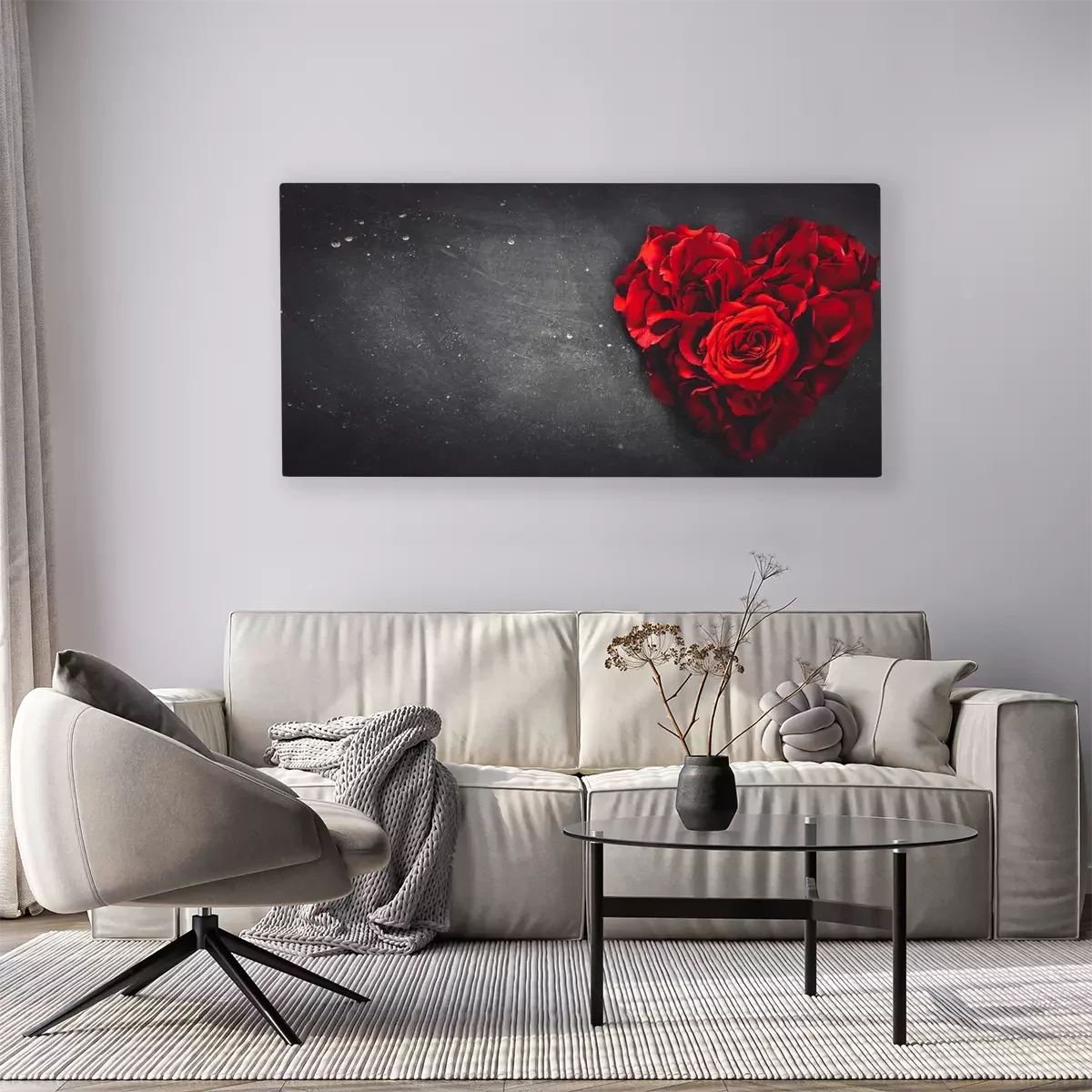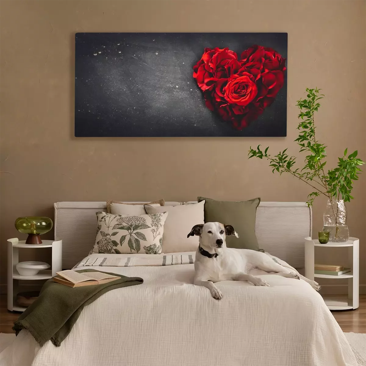Canvas: Hartvormige rode rozen op stenen achtergrond.