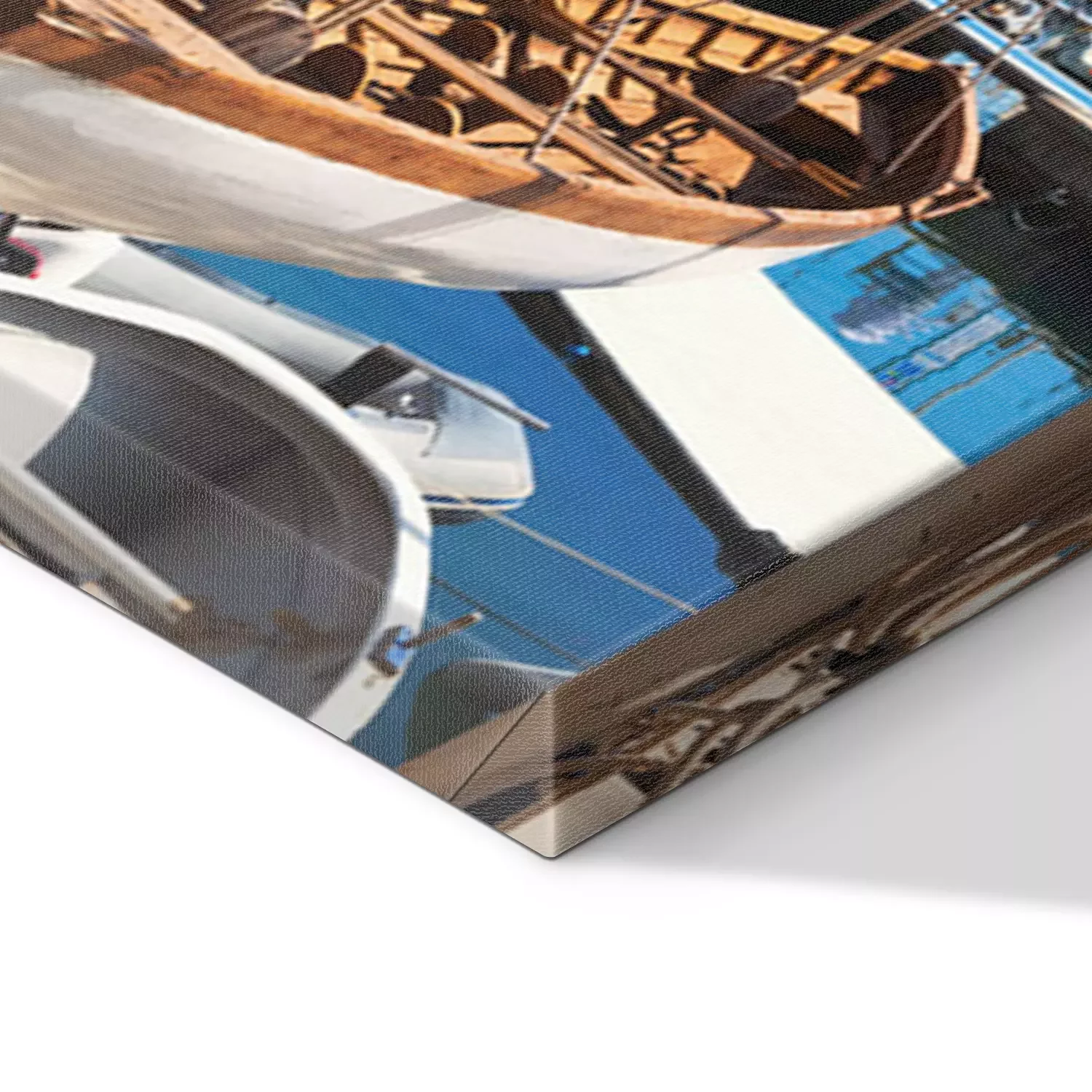 De print wordt aangebracht op hoogwaardig canvas dat op een schildersweefgetouw (spieraam) wordt gespannen. Omdat de print de zijranden bedekt, hoeft het ontwerp niet met een extra kader te worden omlijst. Wij raden ook composities aan die uit meerdere foto's bestaan en zo een coherente compositie vormen.