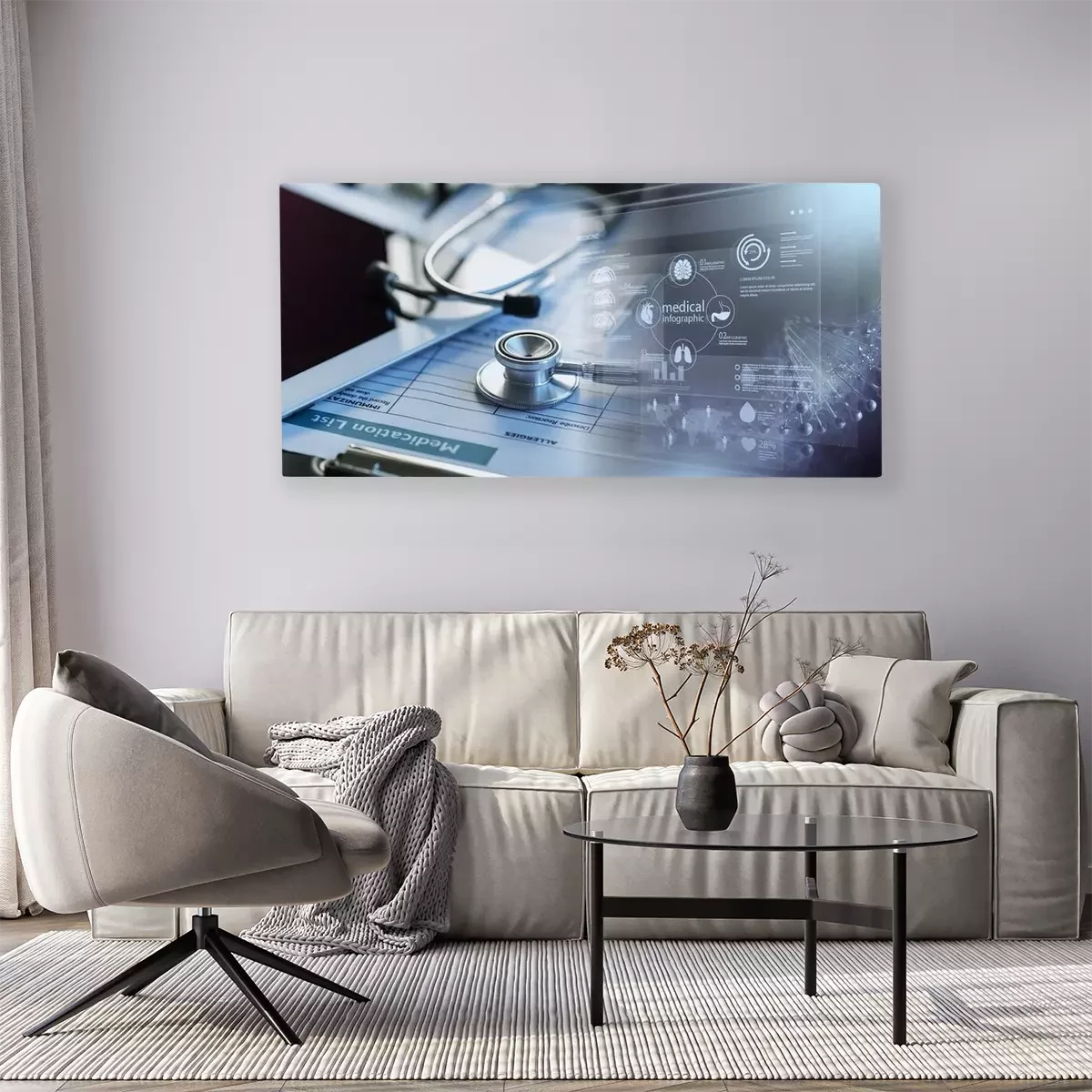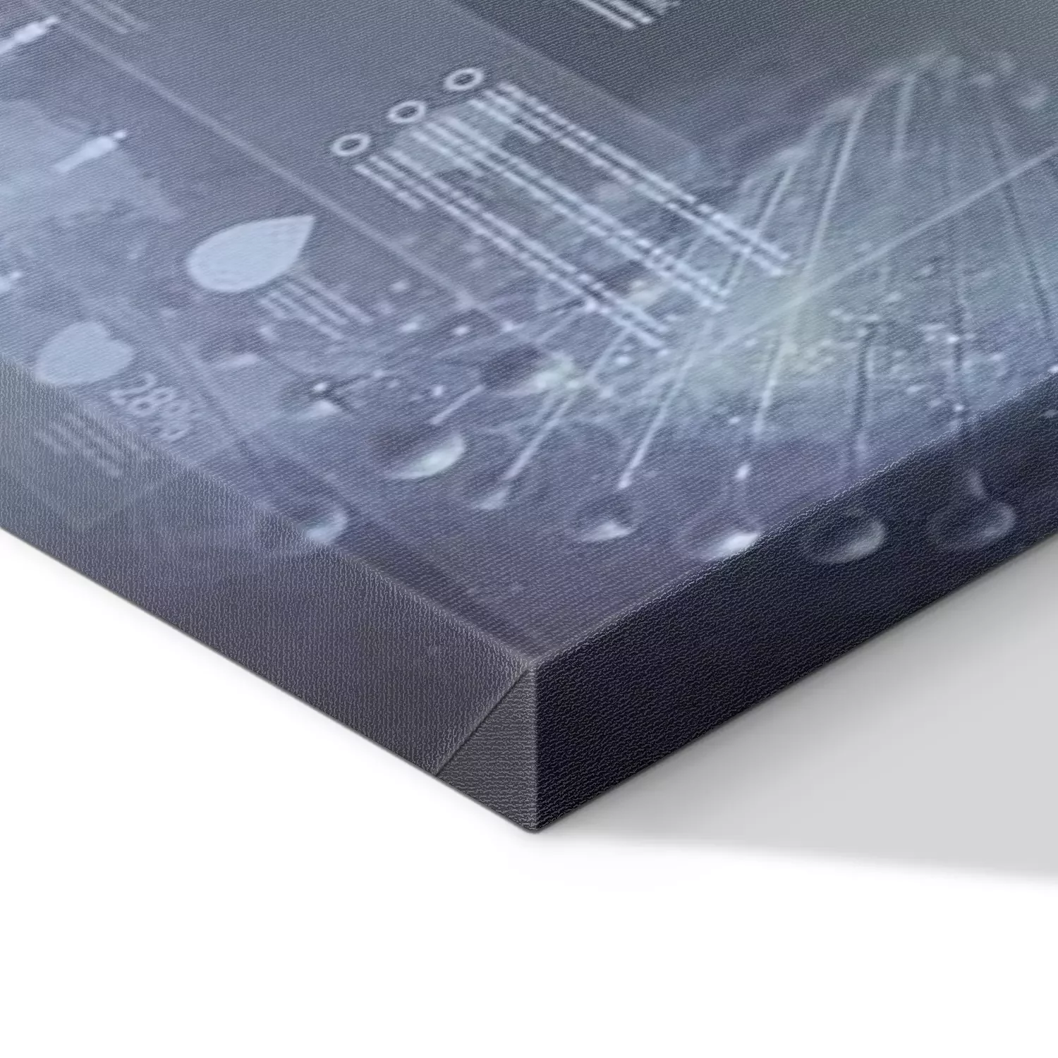 De print wordt aangebracht op hoogwaardig canvas dat op een schildersweefgetouw (spieraam) wordt gespannen. Omdat de print de zijranden bedekt, hoeft het ontwerp niet met een extra kader te worden omlijst. Wij raden ook composities aan die uit meerdere foto's bestaan en zo een coherente compositie vormen.