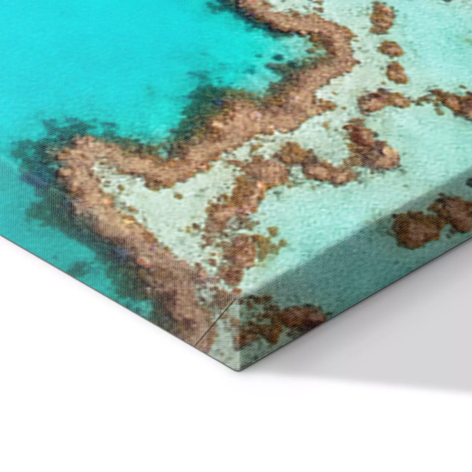 De print wordt aangebracht op hoogwaardig canvas dat op een schildersweefgetouw (spieraam) wordt gespannen. Omdat de print de zijranden bedekt, hoeft het ontwerp niet met een extra kader te worden omlijst. Wij raden ook composities aan die uit meerdere foto's bestaan en zo een coherente compositie vormen.