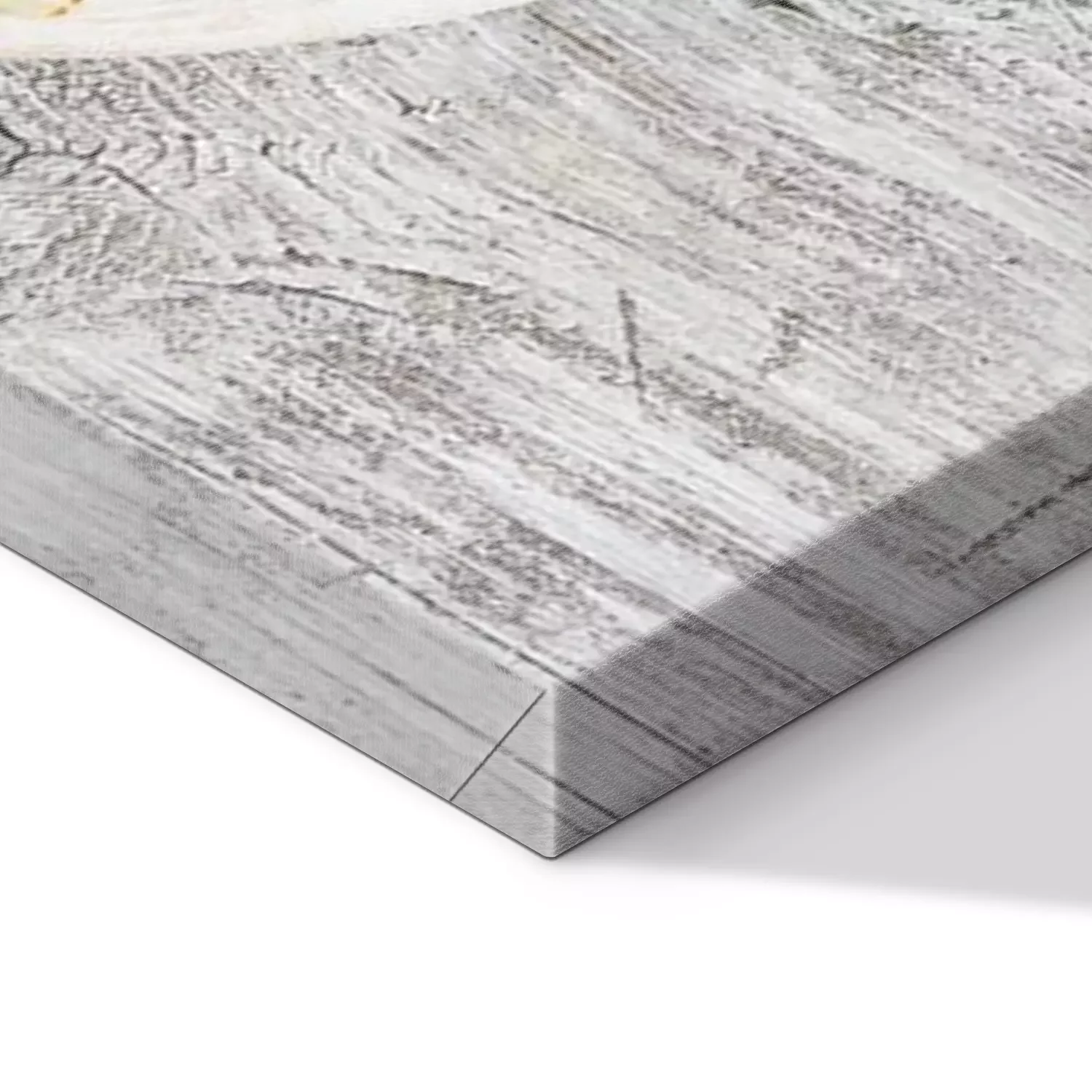 De print wordt aangebracht op hoogwaardig canvas dat op een schildersweefgetouw (spieraam) wordt gespannen. Omdat de print de zijranden bedekt, hoeft het ontwerp niet met een extra kader te worden omlijst. Wij raden ook composities aan die uit meerdere foto's bestaan en zo een coherente compositie vormen.
