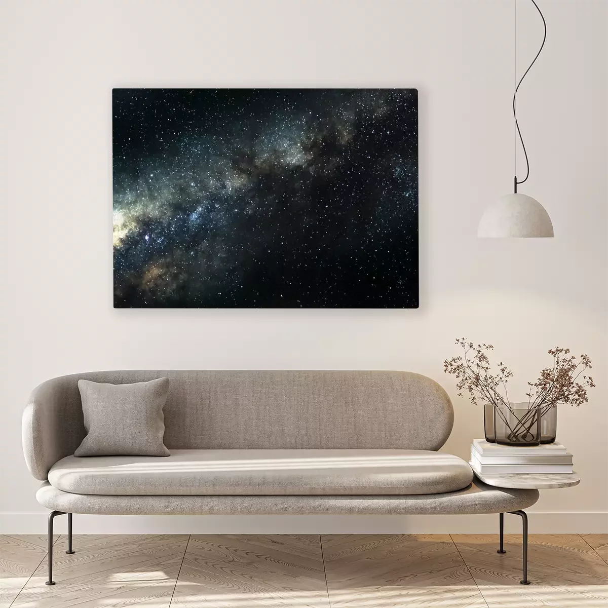 De print wordt aangebracht op hoogwaardig canvas dat op een schildersweefgetouw (spieraam) wordt gespannen. Omdat de print de zijranden bedekt, hoeft het ontwerp niet met een extra kader te worden omlijst. Wij raden ook composities aan die uit meerdere foto's bestaan en zo een coherente compositie vormen.
