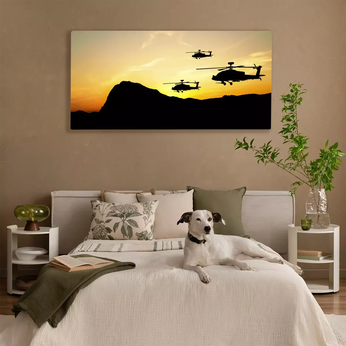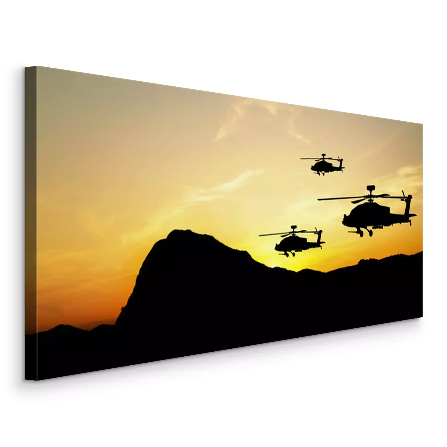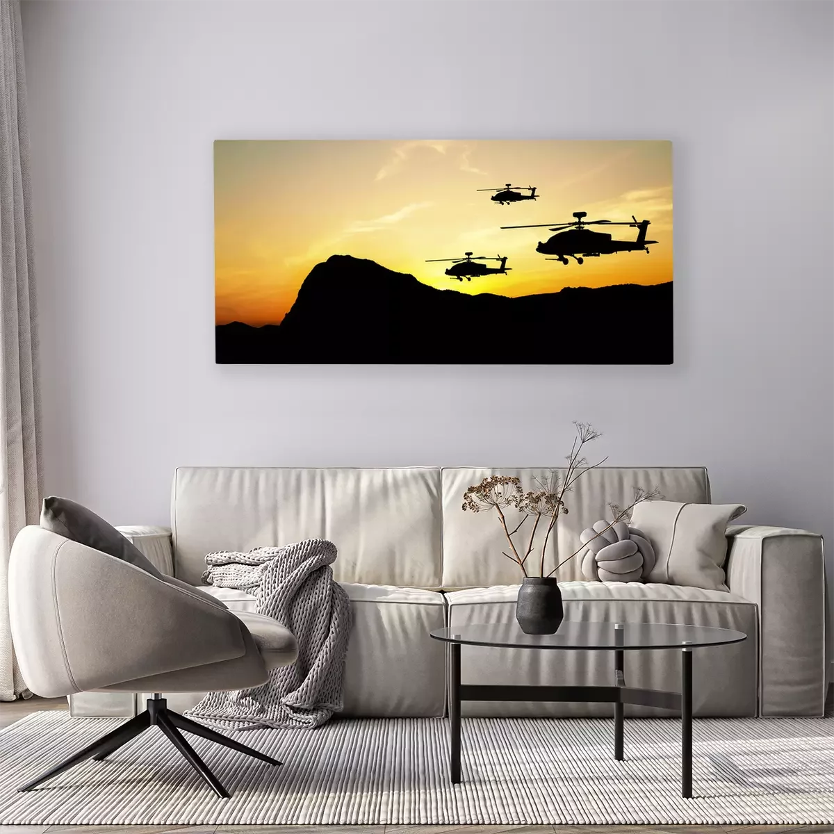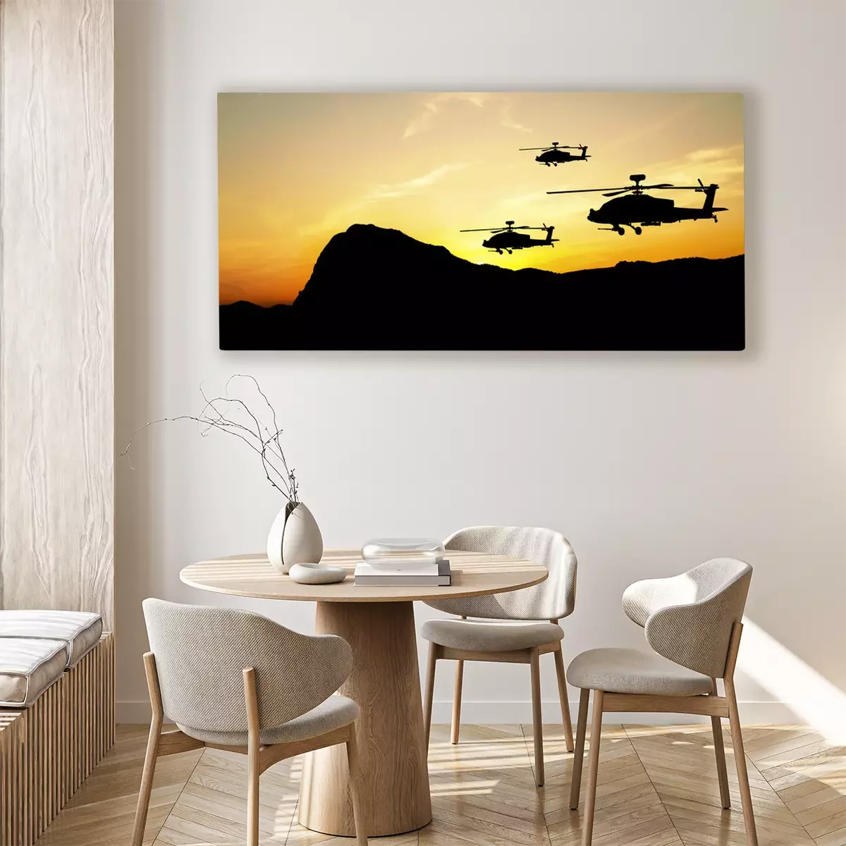 Canvas: Helikopter silhouetten op zonsondergang achtergrond