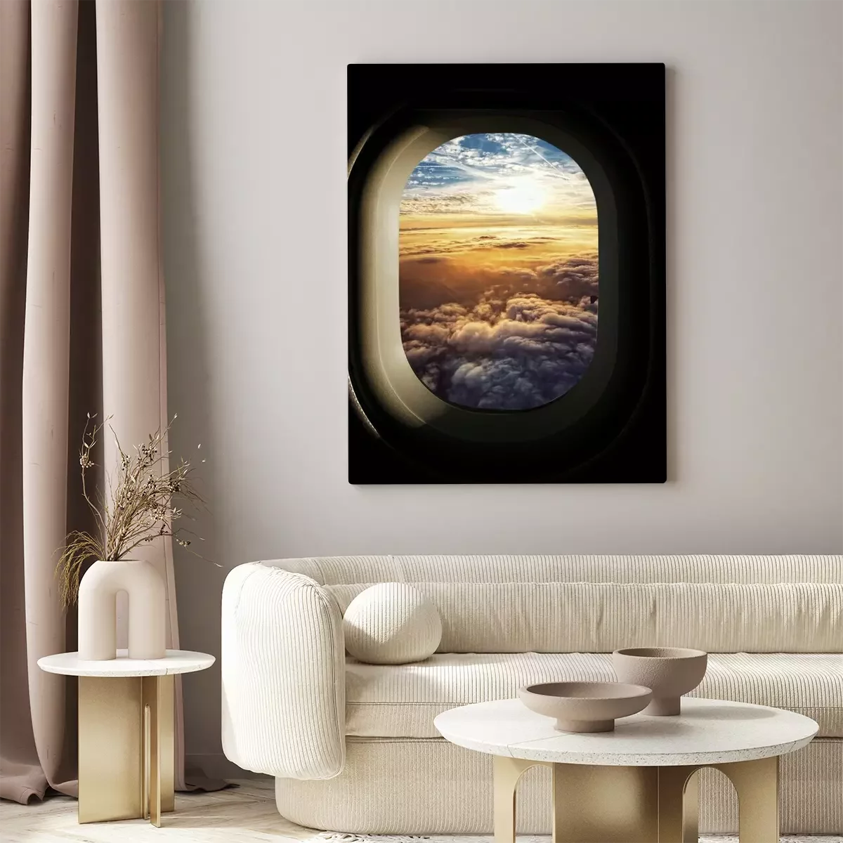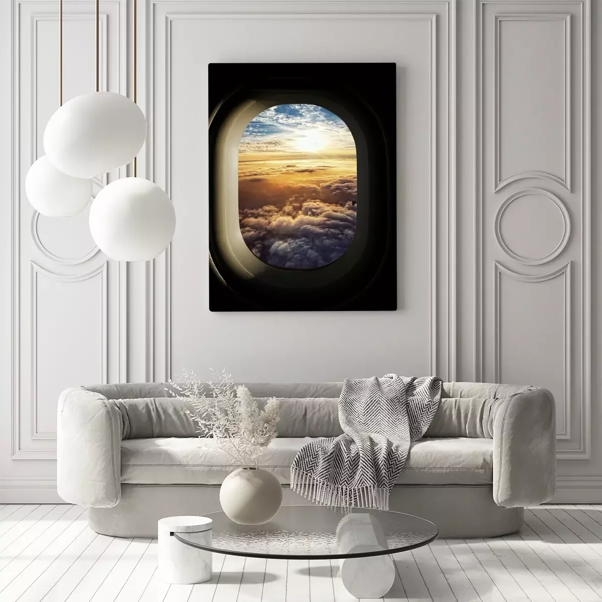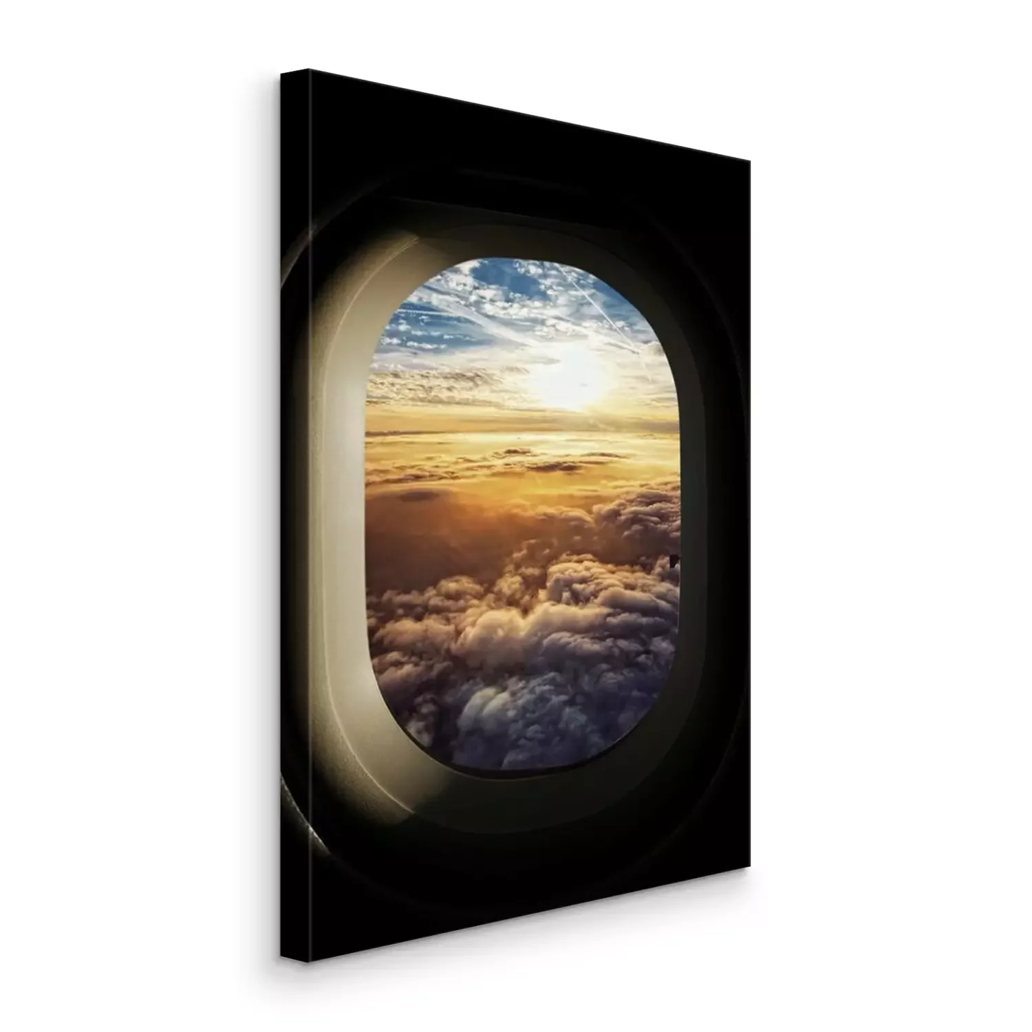 Canvas: Hemelse lucht gezien door de ramen van een vliegtuig