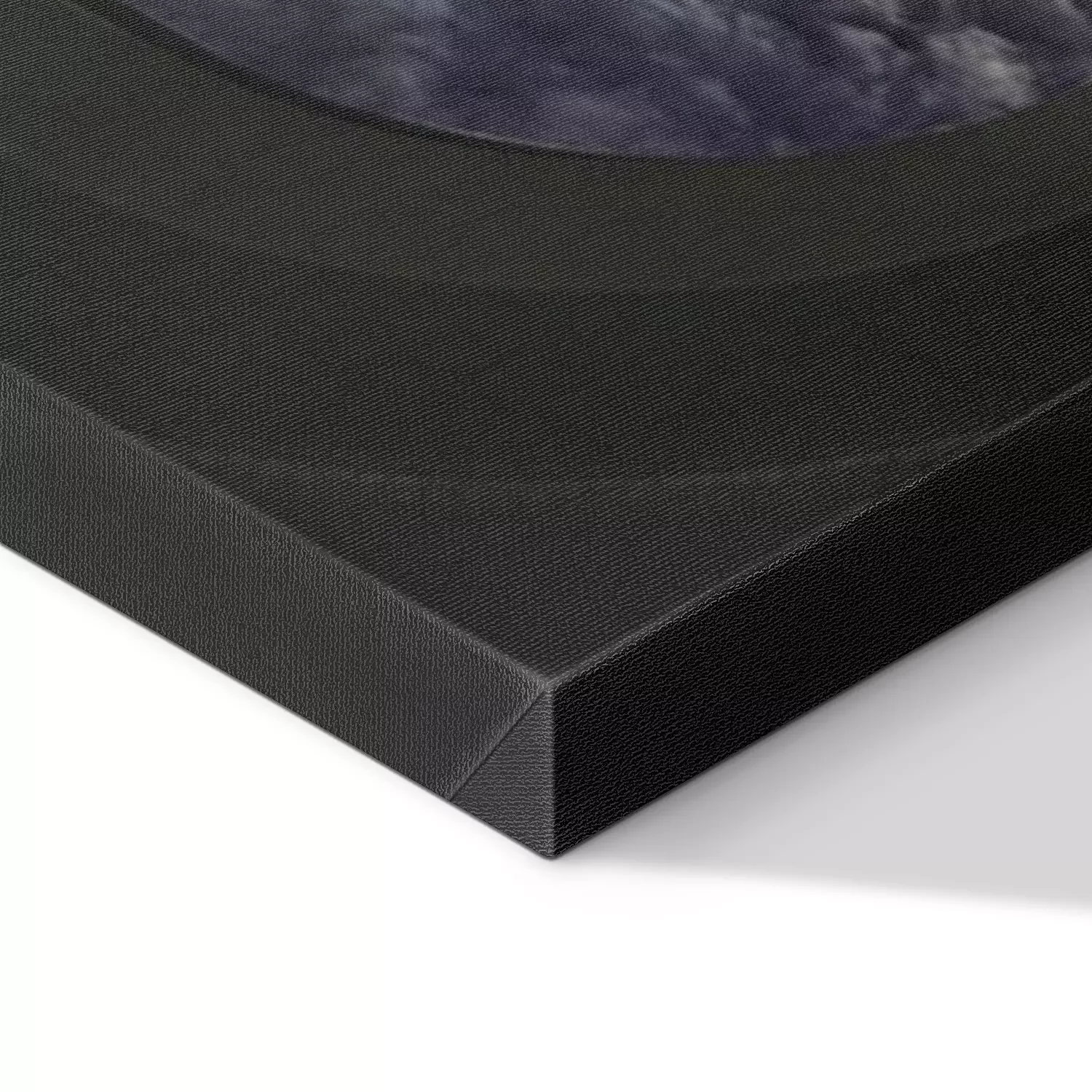 De print wordt aangebracht op hoogwaardig canvas dat op een schildersweefgetouw (spieraam) wordt gespannen. Omdat de print de zijranden bedekt, hoeft het ontwerp niet met een extra kader te worden omlijst. Wij raden ook composities aan die uit meerdere foto's bestaan en zo een coherente compositie vormen.