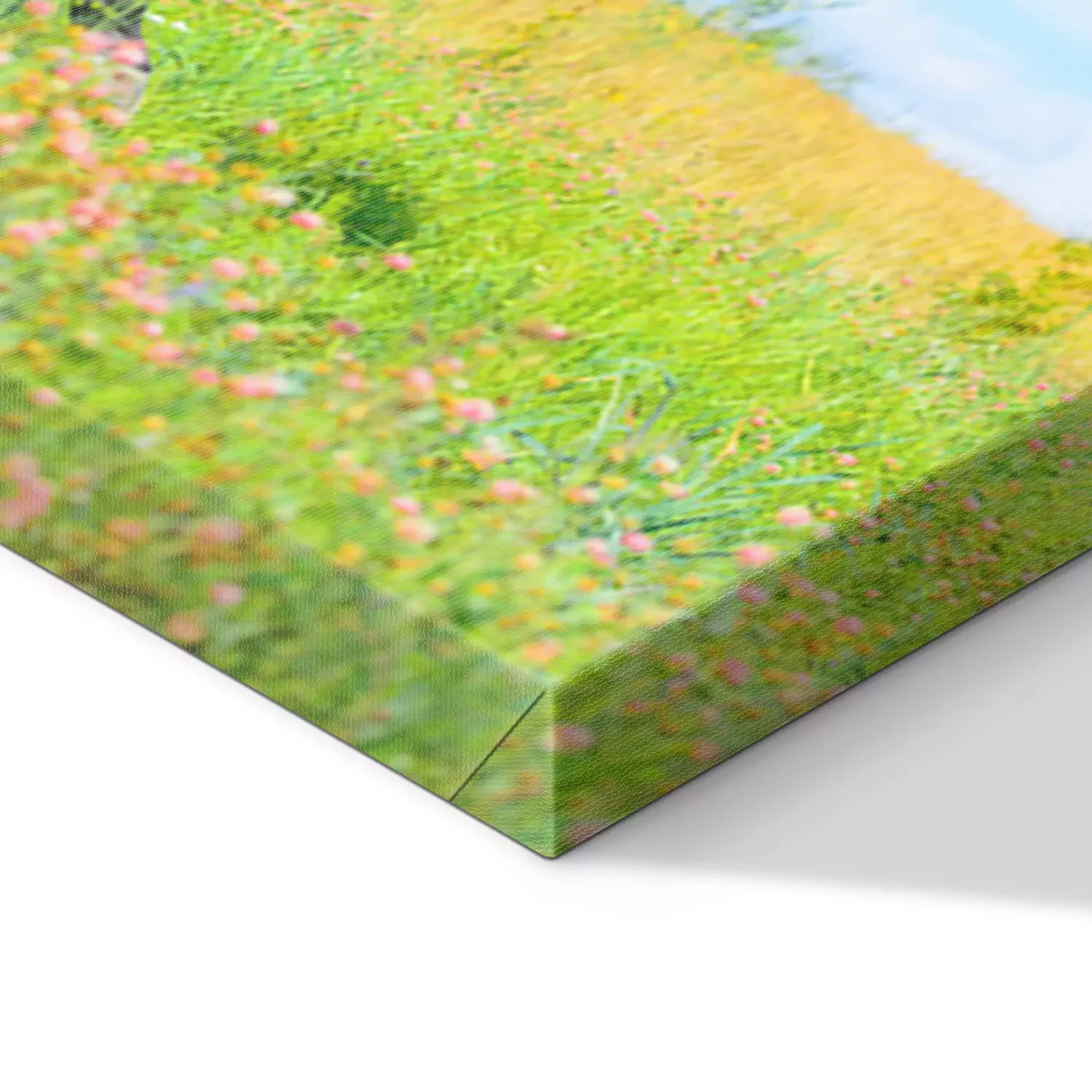 De print wordt aangebracht op hoogwaardig canvas dat op een schildersweefgetouw (spieraam) wordt gespannen. Omdat de print de zijranden bedekt, hoeft het ontwerp niet met een extra kader te worden omlijst. Wij raden ook composities aan die uit meerdere foto's bestaan en zo een coherente compositie vormen.