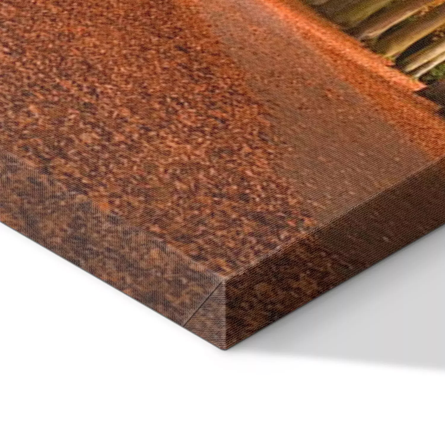 De print wordt aangebracht op hoogwaardig canvas dat op een schildersweefgetouw (spieraam) wordt gespannen. Omdat de print de zijranden bedekt, hoeft het ontwerp niet met een extra kader te worden omlijst. Wij raden ook composities aan die uit meerdere foto's bestaan en zo een coherente compositie vormen.