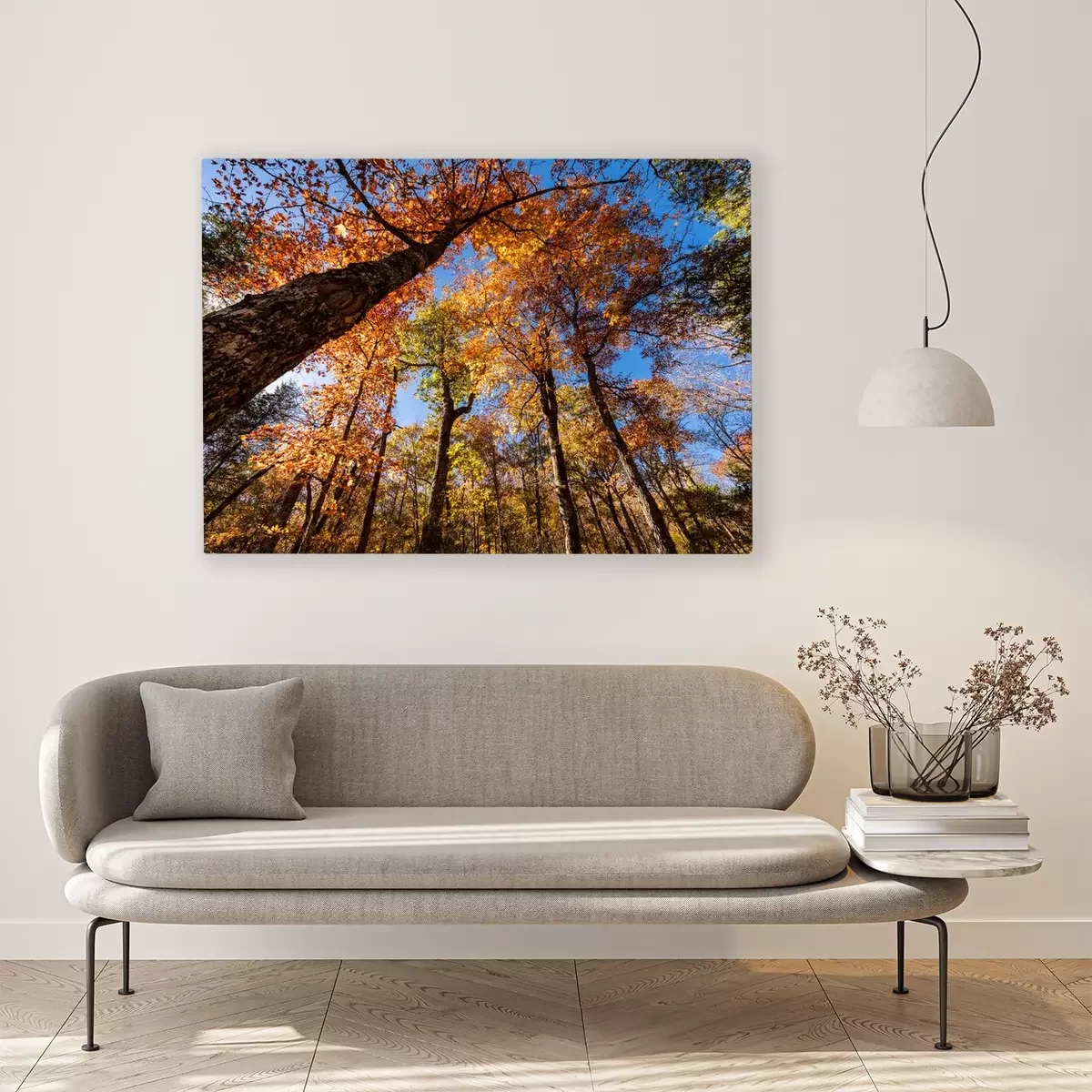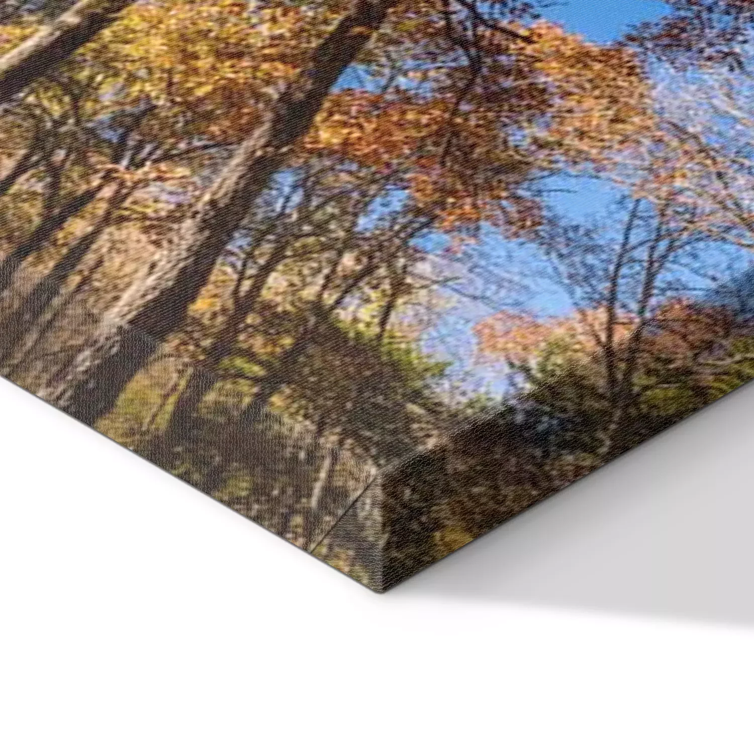 De print wordt aangebracht op hoogwaardig canvas dat op een schildersweefgetouw (spieraam) wordt gespannen. Omdat de print de zijranden bedekt, hoeft het ontwerp niet met een extra kader te worden omlijst. Wij raden ook composities aan die uit meerdere foto's bestaan en zo een coherente compositie vormen.