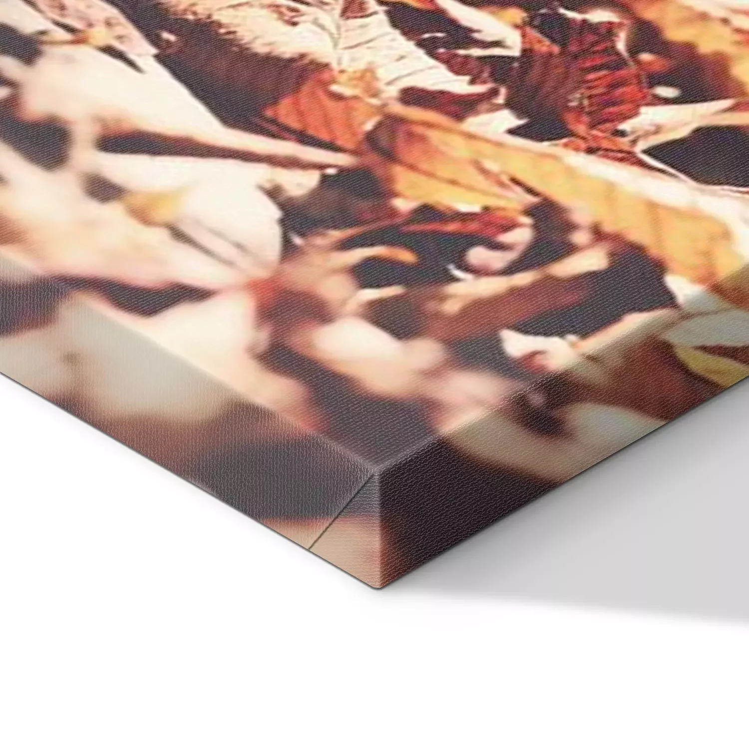 De print wordt aangebracht op hoogwaardig canvas dat op een schildersweefgetouw (spieraam) wordt gespannen. Omdat de print de zijranden bedekt, hoeft het ontwerp niet met een extra kader te worden omlijst. Wij raden ook composities aan die uit meerdere foto's bestaan en zo een coherente compositie vormen.