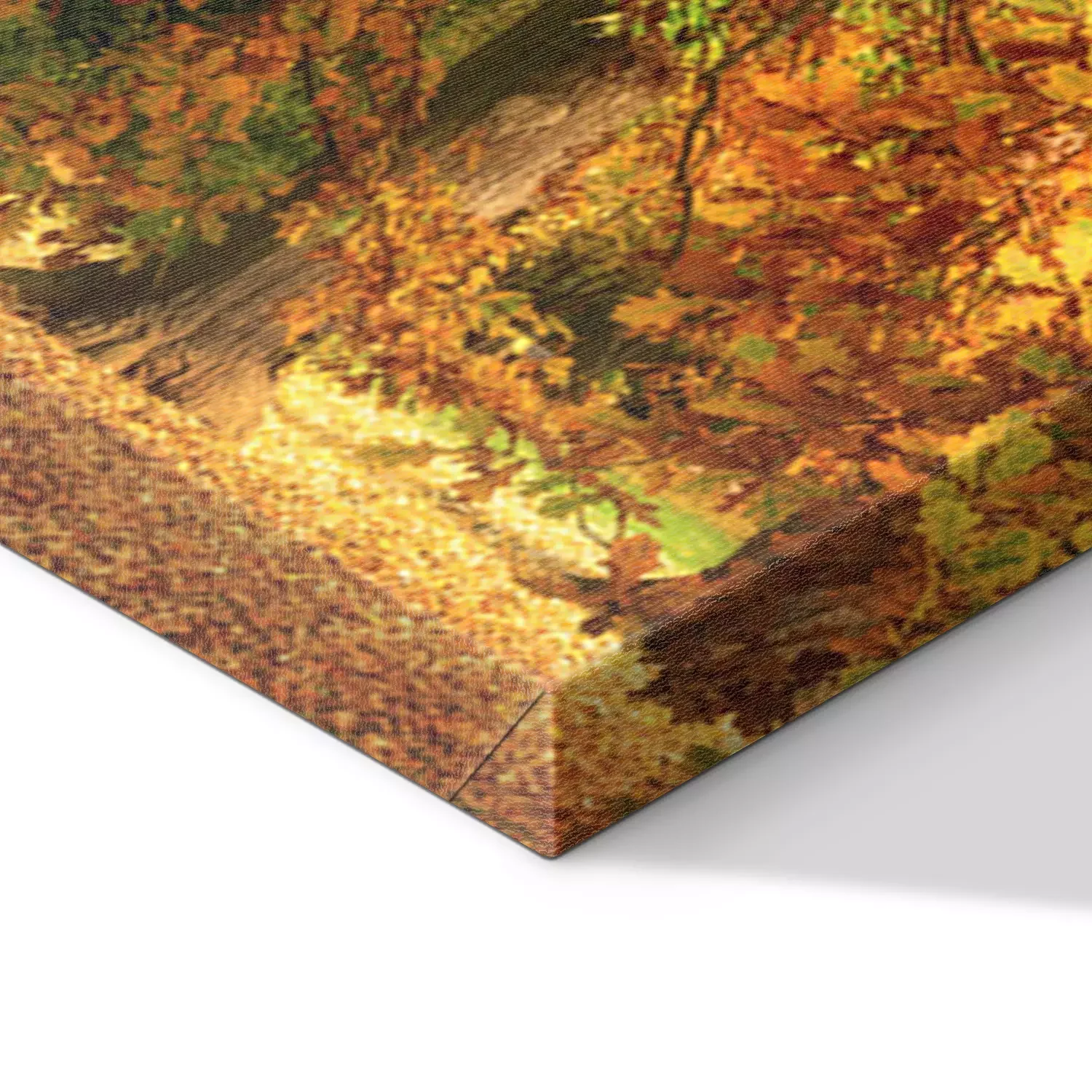 De print wordt aangebracht op hoogwaardig canvas dat op een schildersweefgetouw (spieraam) wordt gespannen. Omdat de print de zijranden bedekt, hoeft het ontwerp niet met een extra kader te worden omlijst. Wij raden ook composities aan die uit meerdere foto's bestaan en zo een coherente compositie vormen.