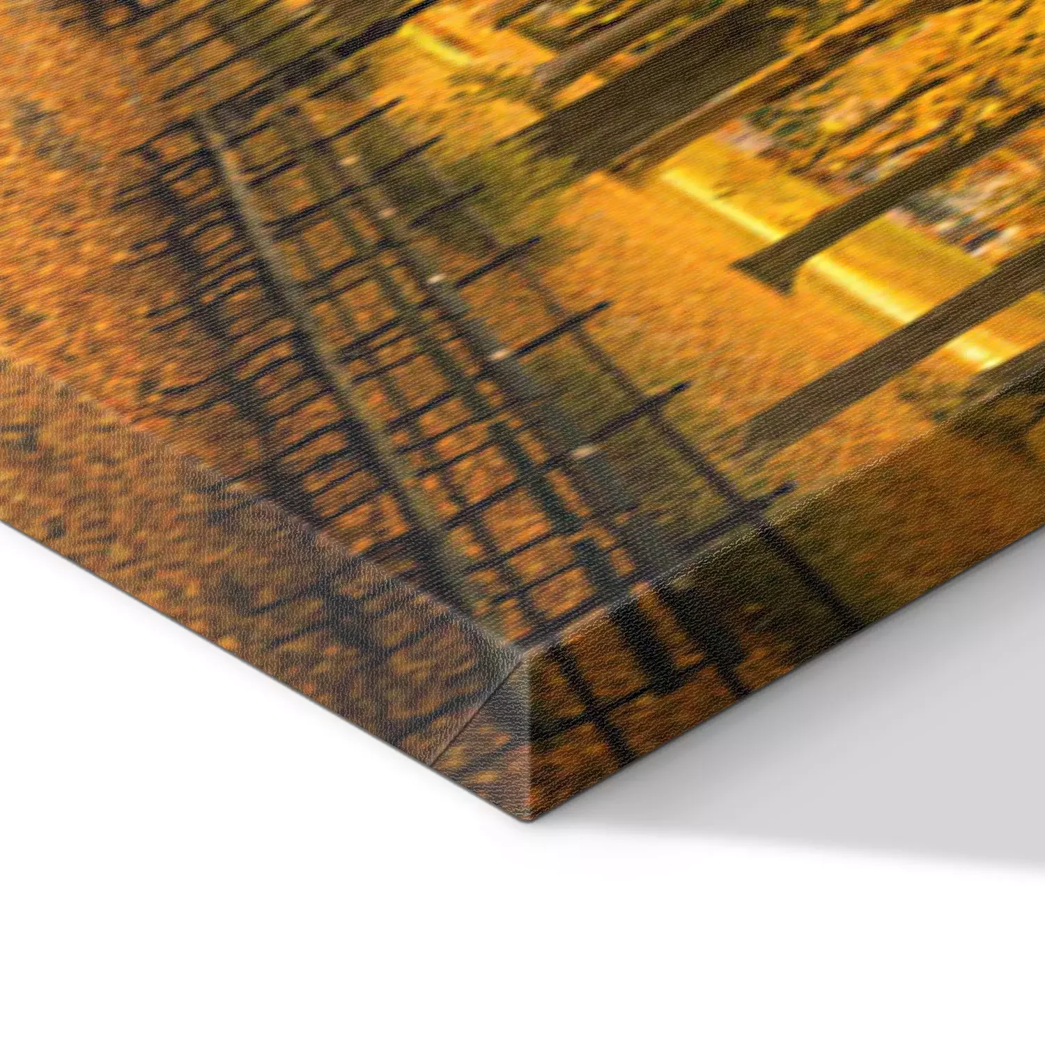 De print wordt aangebracht op hoogwaardig canvas dat op een schildersweefgetouw (spieraam) wordt gespannen. Omdat de print de zijranden bedekt, hoeft het ontwerp niet met een extra kader te worden omlijst. Wij raden ook composities aan die uit meerdere foto's bestaan en zo een coherente compositie vormen.