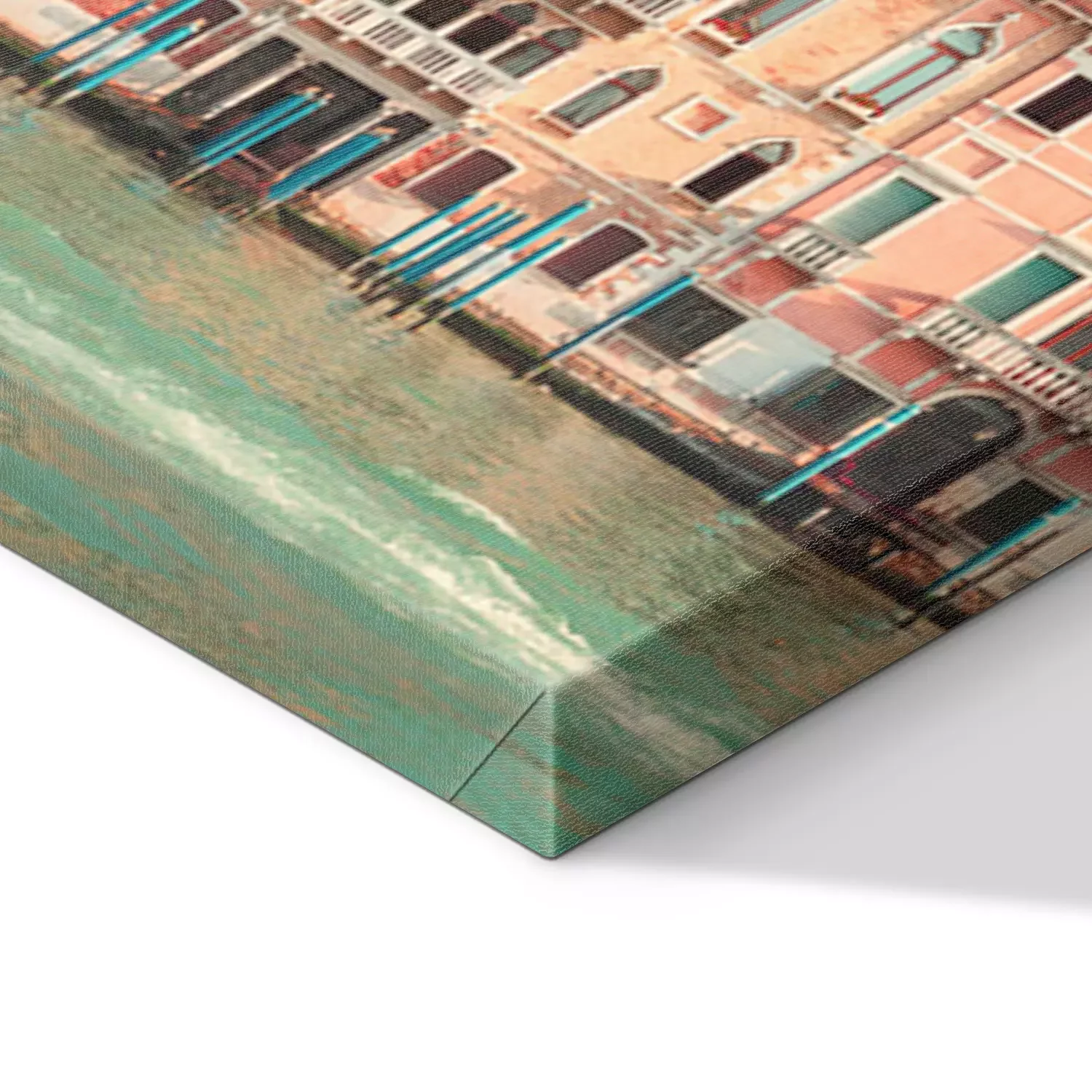De print wordt aangebracht op hoogwaardig canvas dat op een schildersweefgetouw (spieraam) wordt gespannen. Omdat de print de zijranden bedekt, hoeft het ontwerp niet met een extra kader te worden omlijst. Wij raden ook composities aan die uit meerdere foto's bestaan en zo een coherente compositie vormen.