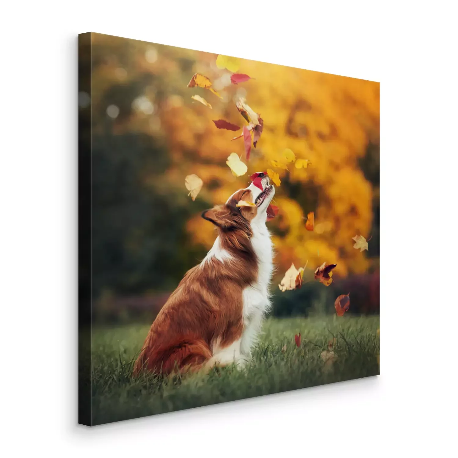 Canvas Herfstbladeren en een hond