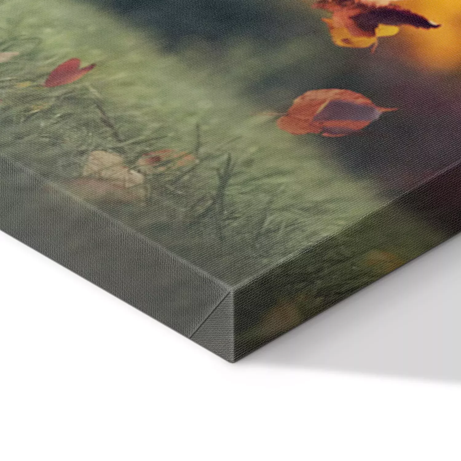 De print wordt aangebracht op hoogwaardig canvas dat op een schildersweefgetouw (spieraam) wordt gespannen. Omdat de print de zijranden bedekt, hoeft het ontwerp niet met een extra kader te worden omlijst. Wij raden ook composities aan die uit meerdere foto's bestaan en zo een coherente compositie vormen.