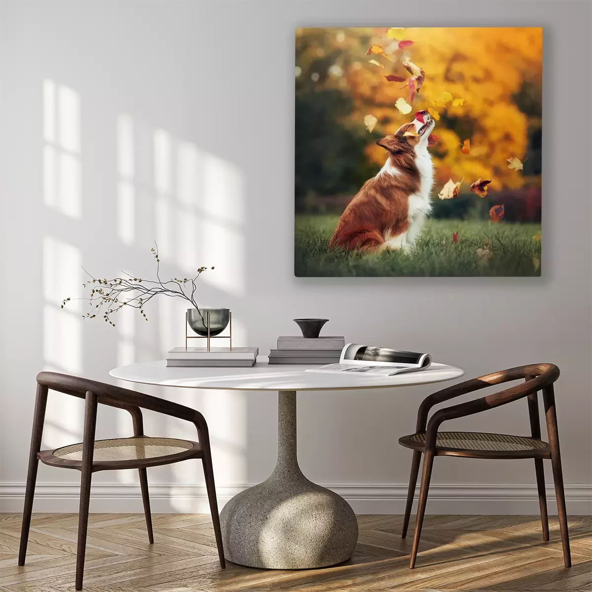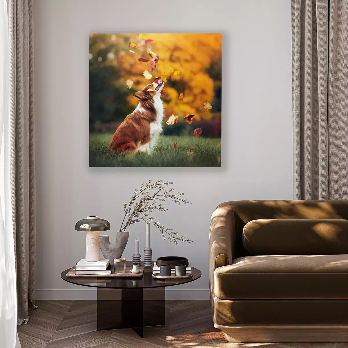 Canvas: Herfstbladeren en een hond