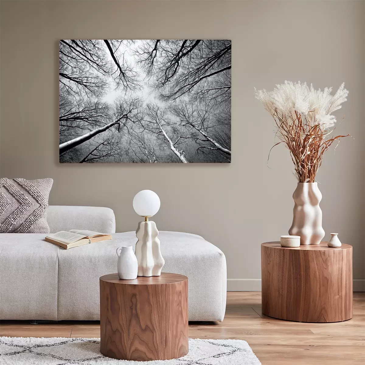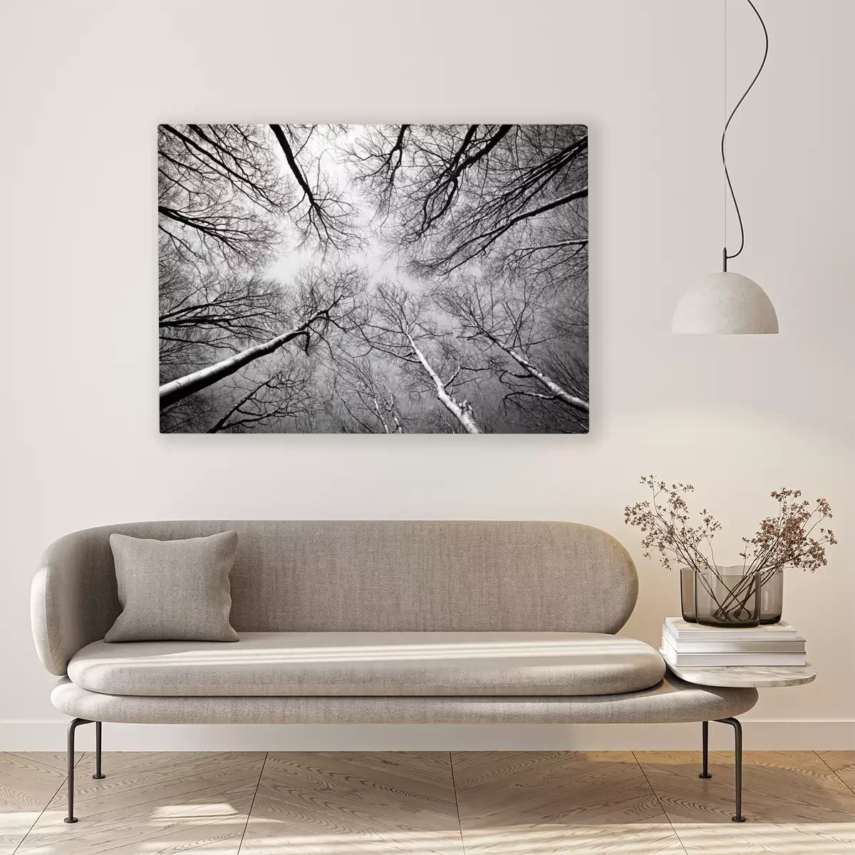 De print wordt aangebracht op hoogwaardig canvas dat op een schildersweefgetouw (spieraam) wordt gespannen. Omdat de print de zijranden bedekt, hoeft het ontwerp niet met een extra kader te worden omlijst. Wij raden ook composities aan die uit meerdere foto's bestaan en zo een coherente compositie vormen.