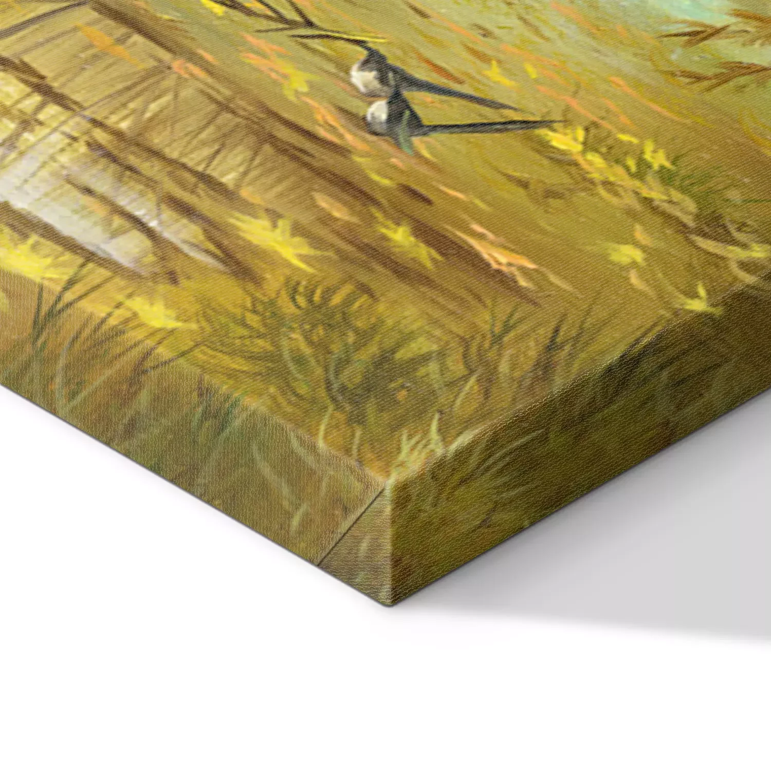 De print wordt aangebracht op hoogwaardig canvas dat op een schildersweefgetouw (spieraam) wordt gespannen. Omdat de print de zijranden bedekt, hoeft het ontwerp niet met een extra kader te worden omlijst. Wij raden ook composities aan die uit meerdere foto's bestaan en zo een coherente compositie vormen.