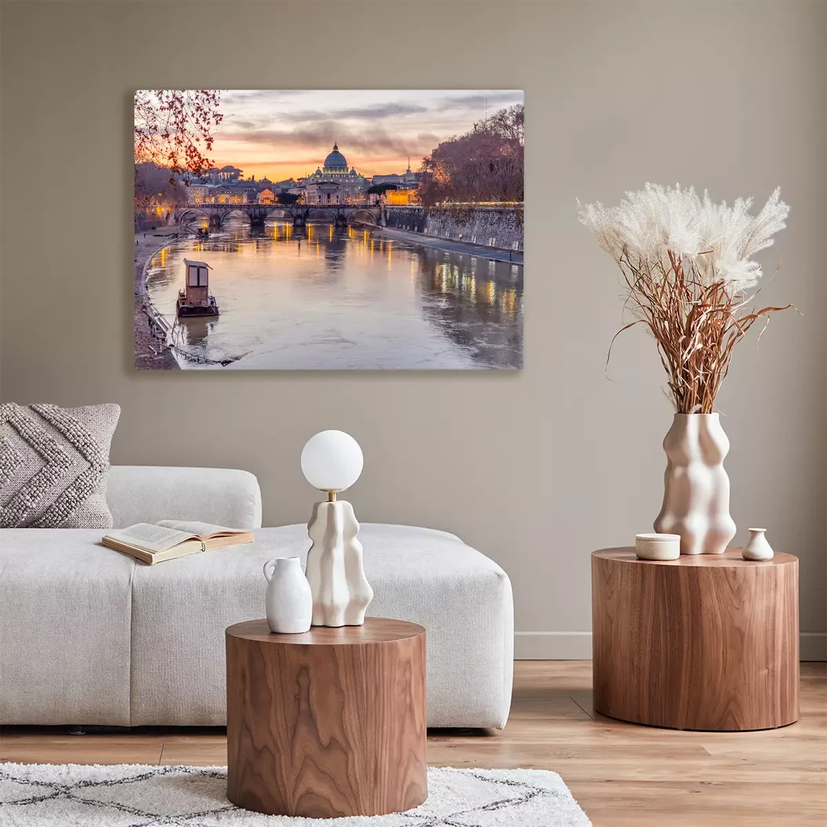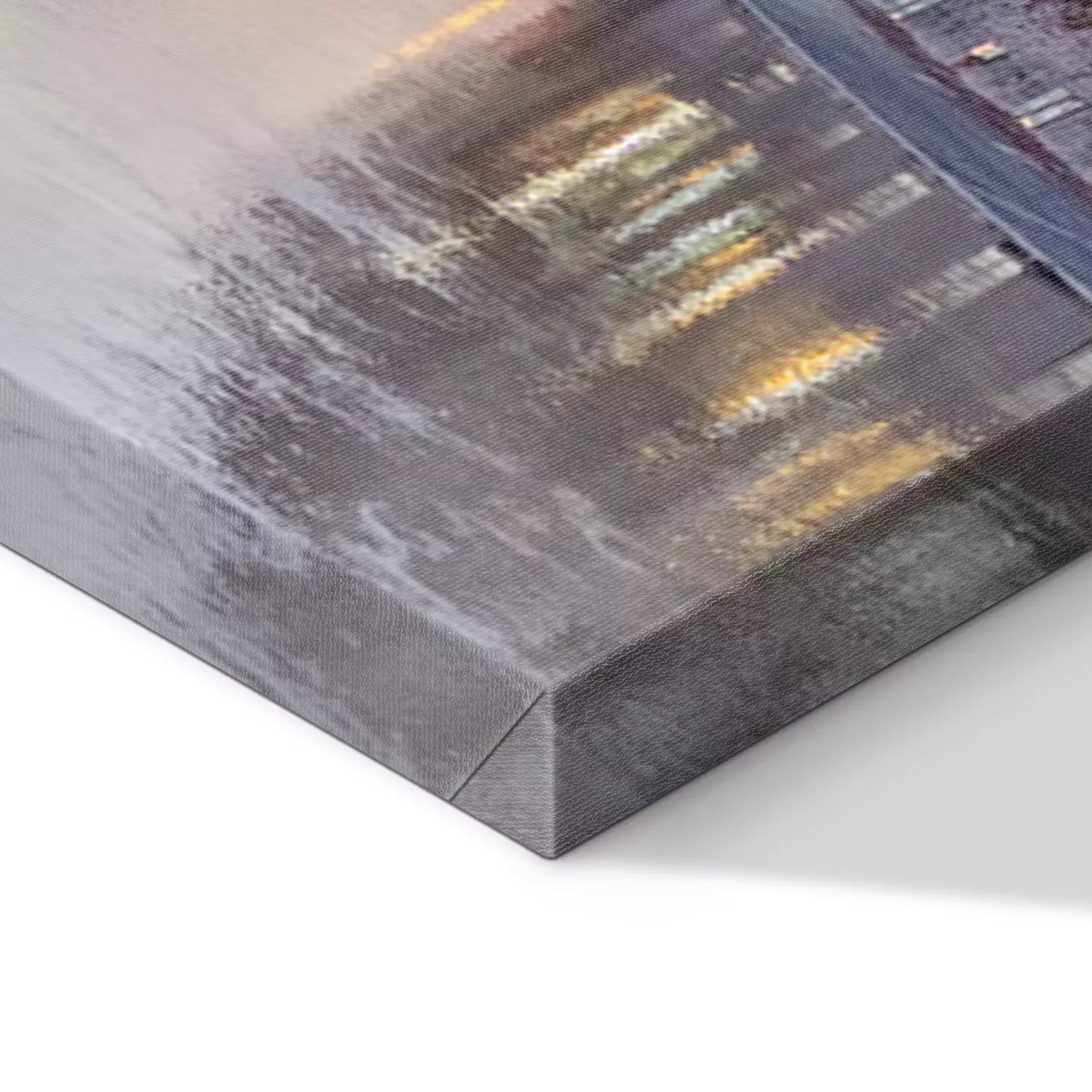 De print wordt aangebracht op hoogwaardig canvas dat op een schildersweefgetouw (spieraam) wordt gespannen. Omdat de print de zijranden bedekt, hoeft het ontwerp niet met een extra kader te worden omlijst. Wij raden ook composities aan die uit meerdere foto's bestaan en zo een coherente compositie vormen.