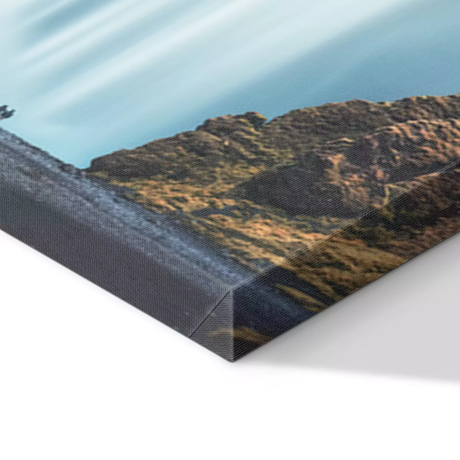 De print wordt aangebracht op hoogwaardig canvas dat op een schildersweefgetouw (spieraam) wordt gespannen. Omdat de print de zijranden bedekt, hoeft het ontwerp niet met een extra kader te worden omlijst. Wij raden ook composities aan die uit meerdere foto's bestaan en zo een coherente compositie vormen.