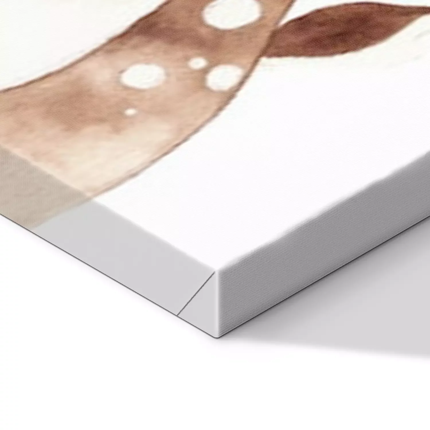 De print wordt aangebracht op hoogwaardig canvas dat op een schildersweefgetouw (spieraam) wordt gespannen. Omdat de print de zijranden bedekt, hoeft het ontwerp niet met een extra kader te worden omlijst. Wij raden ook composities aan die uit meerdere foto's bestaan en zo een coherente compositie vormen.