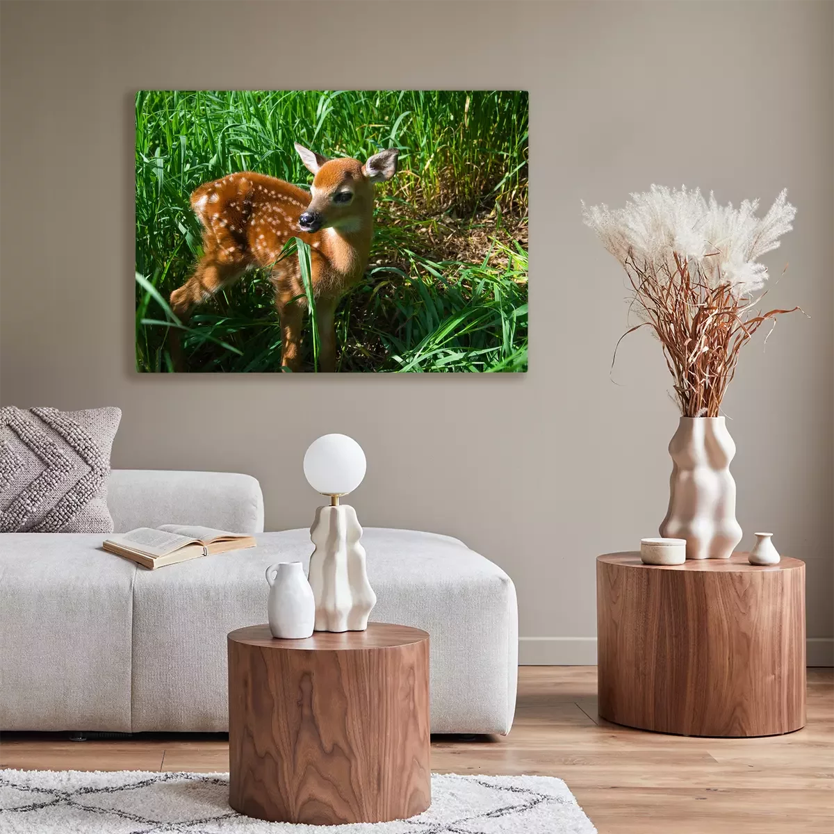 De print wordt aangebracht op hoogwaardig canvas dat op een schildersweefgetouw (spieraam) wordt gespannen. Omdat de print de zijranden bedekt, hoeft het ontwerp niet met een extra kader te worden omlijst. Wij raden ook composities aan die uit meerdere foto's bestaan en zo een coherente compositie vormen.