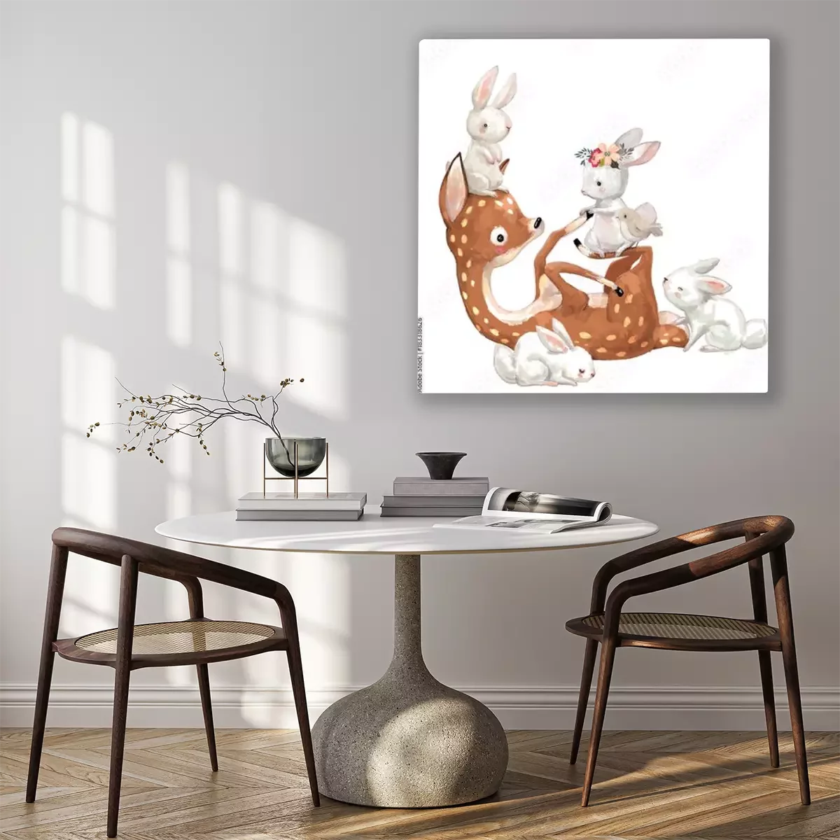 De print wordt aangebracht op hoogwaardig canvas dat op een schildersweefgetouw (spieraam) wordt gespannen. Omdat de print de zijranden bedekt, hoeft het ontwerp niet met een extra kader te worden omlijst. Wij raden ook composities aan die uit meerdere foto's bestaan en zo een coherente compositie vormen.