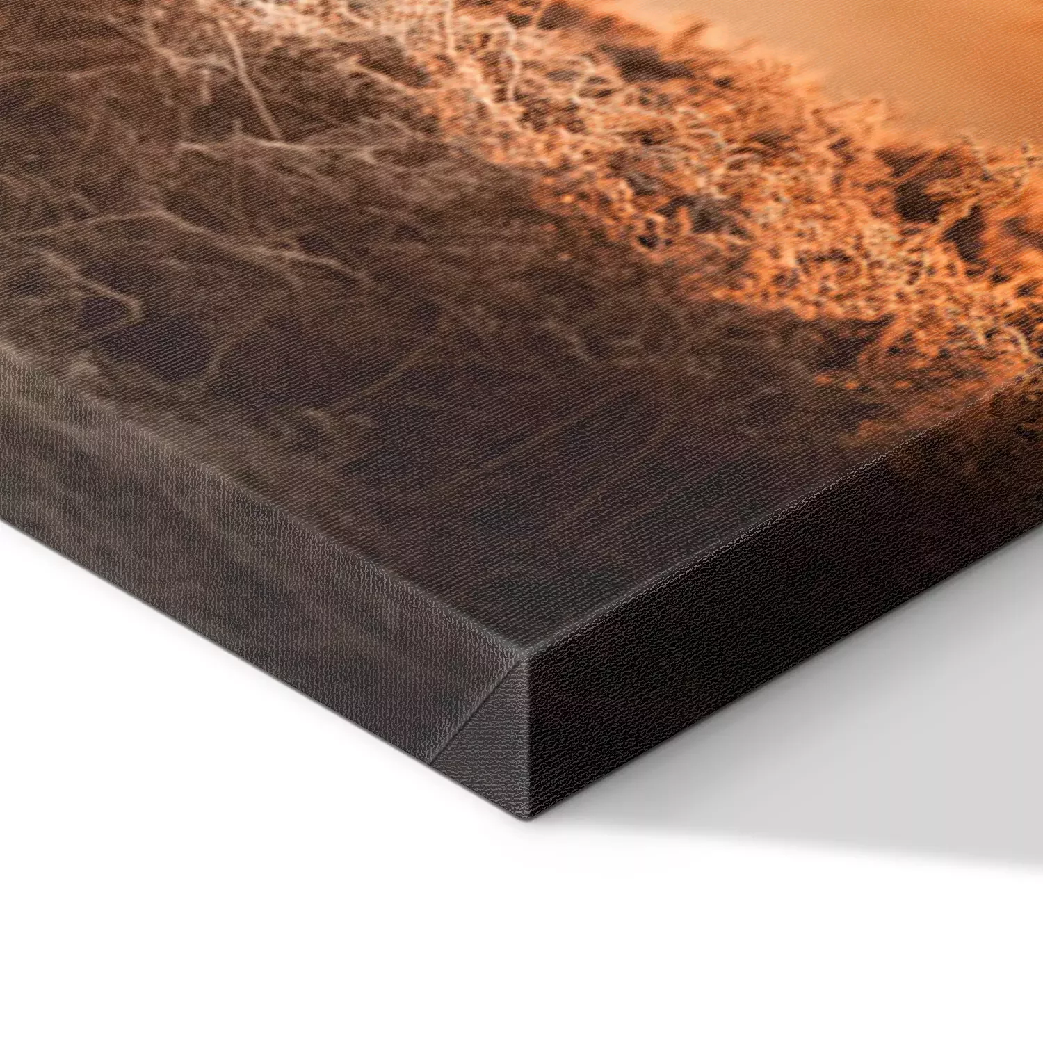 De print wordt aangebracht op hoogwaardig canvas dat op een schildersweefgetouw (spieraam) wordt gespannen. Omdat de print de zijranden bedekt, hoeft het ontwerp niet met een extra kader te worden omlijst. Wij raden ook composities aan die uit meerdere foto's bestaan en zo een coherente compositie vormen.