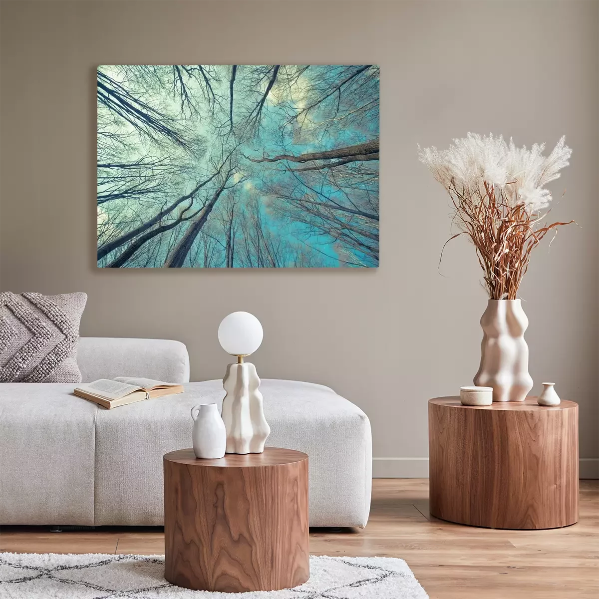 De print wordt aangebracht op hoogwaardig canvas dat op een schildersweefgetouw (spieraam) wordt gespannen. Omdat de print de zijranden bedekt, hoeft het ontwerp niet met een extra kader te worden omlijst. Wij raden ook composities aan die uit meerdere foto's bestaan en zo een coherente compositie vormen.