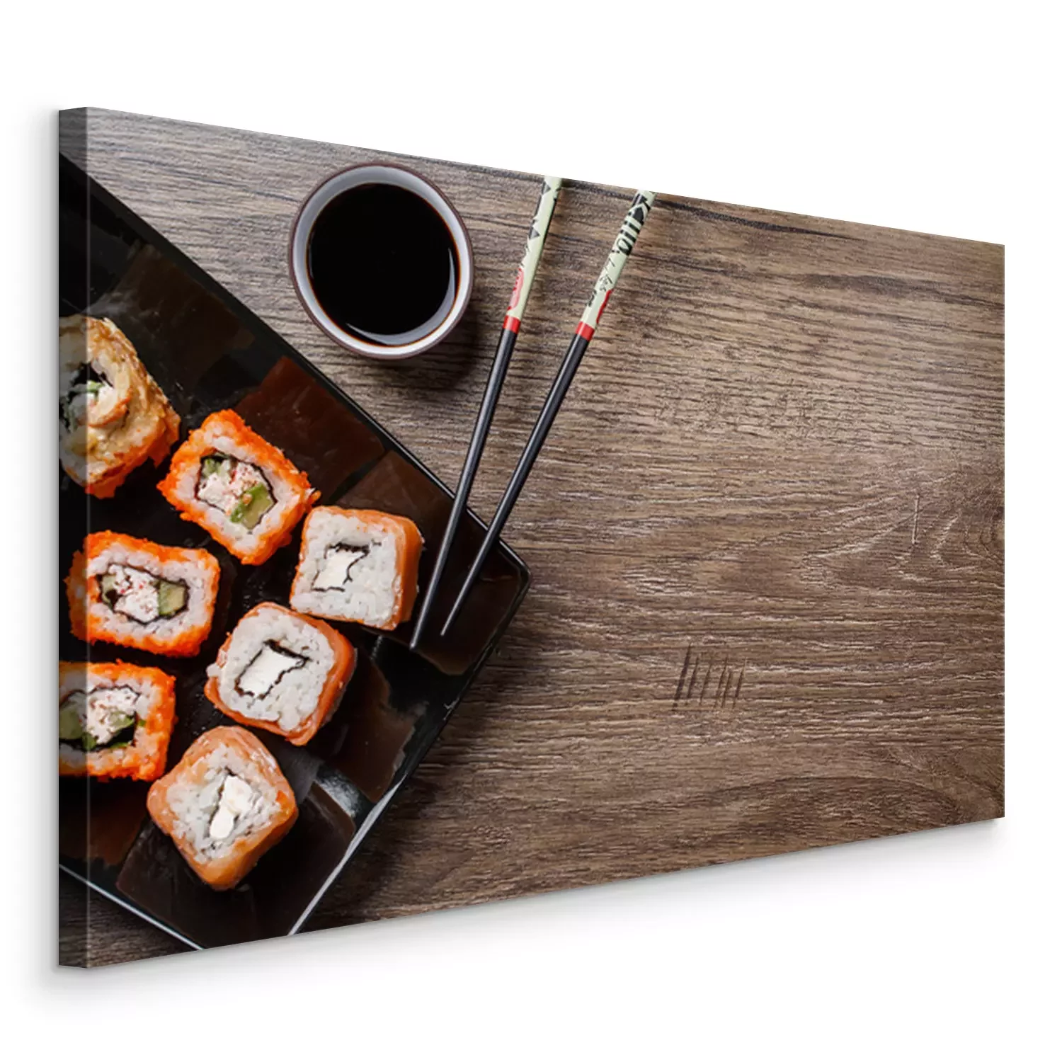Canvas Het broodje van sushi met eetstokjes