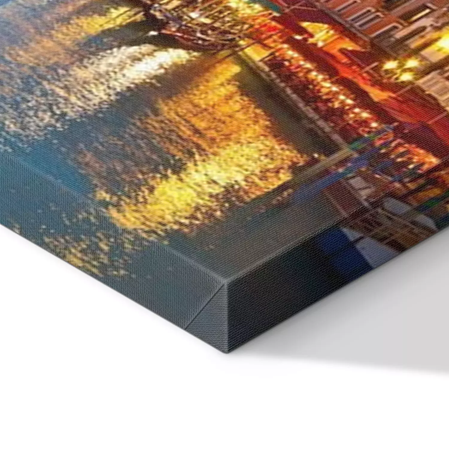 De print wordt aangebracht op hoogwaardig canvas dat op een schildersweefgetouw (spieraam) wordt gespannen. Omdat de print de zijranden bedekt, hoeft het ontwerp niet met een extra kader te worden omlijst. Wij raden ook composities aan die uit meerdere foto's bestaan en zo een coherente compositie vormen.