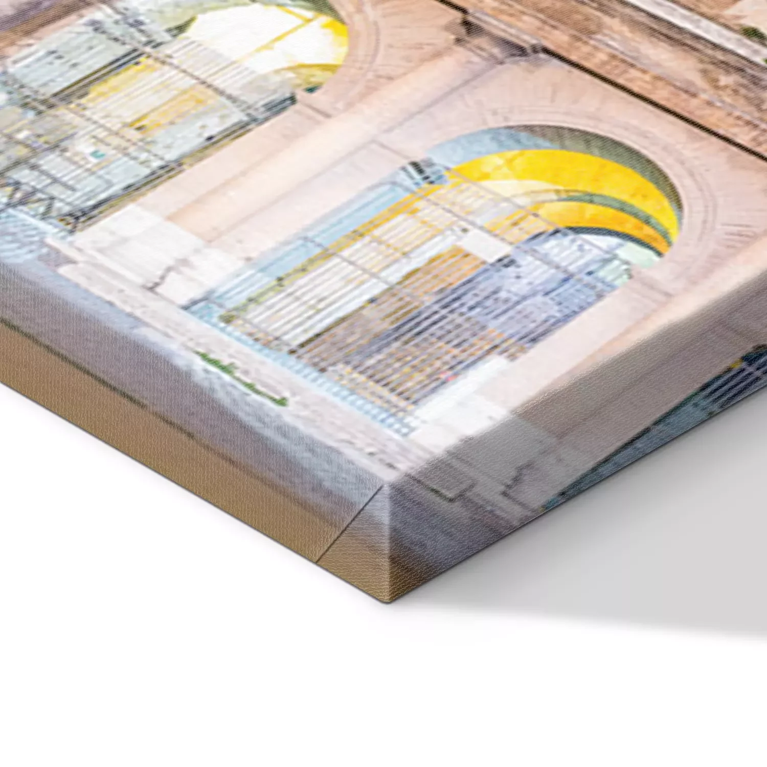 De print wordt aangebracht op hoogwaardig canvas dat op een schildersweefgetouw (spieraam) wordt gespannen. Omdat de print de zijranden bedekt, hoeft het ontwerp niet met een extra kader te worden omlijst. Wij raden ook composities aan die uit meerdere foto's bestaan en zo een coherente compositie vormen.