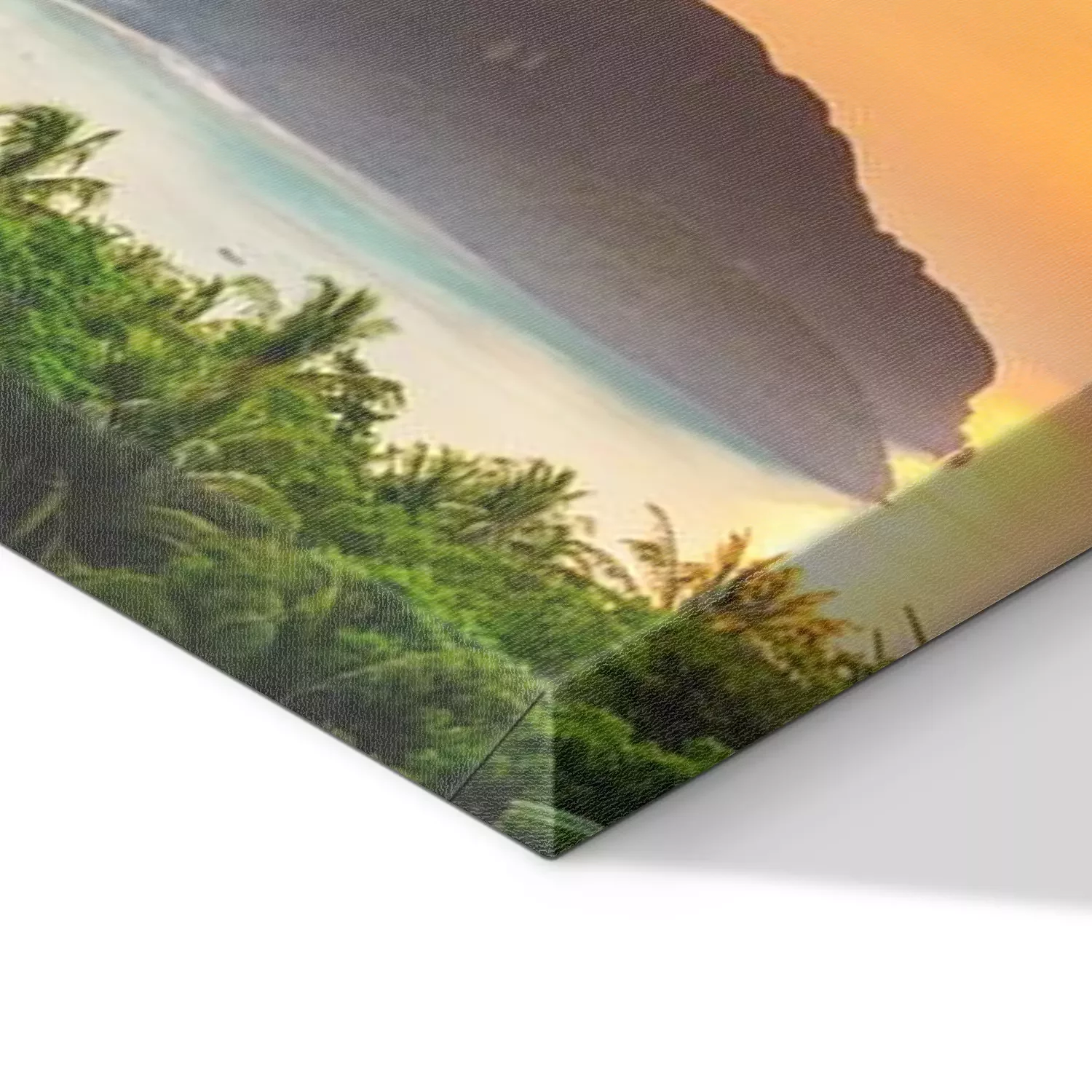 De print wordt aangebracht op hoogwaardig canvas dat op een schildersweefgetouw (spieraam) wordt gespannen. Omdat de print de zijranden bedekt, hoeft het ontwerp niet met een extra kader te worden omlijst. Wij raden ook composities aan die uit meerdere foto's bestaan en zo een coherente compositie vormen.