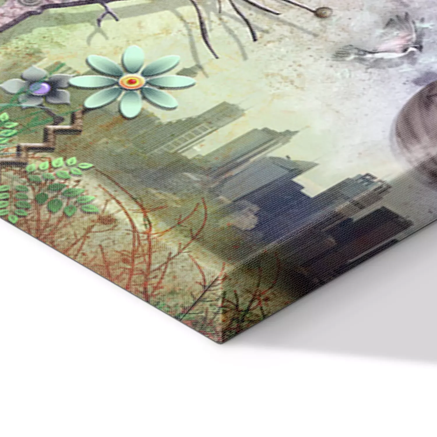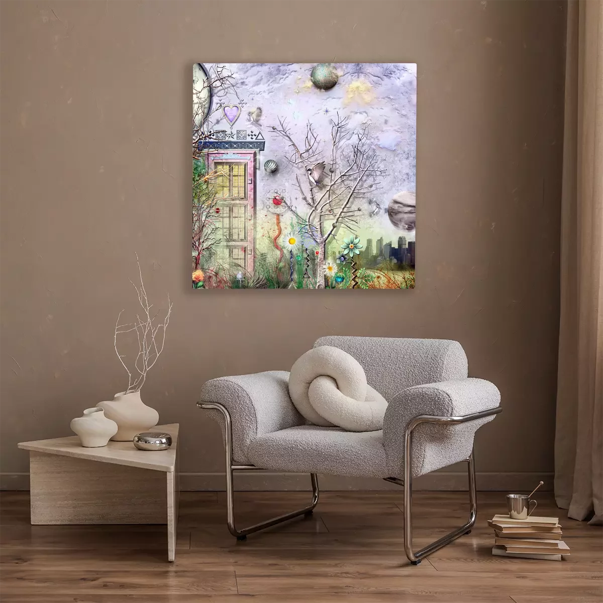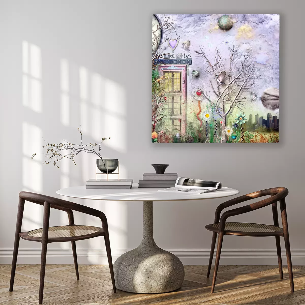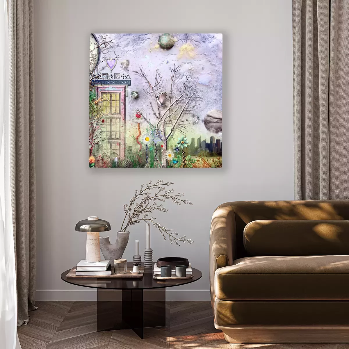 De print wordt aangebracht op hoogwaardig canvas dat op een schildersweefgetouw (spieraam) wordt gespannen. Omdat de print de zijranden bedekt, hoeft het ontwerp niet met een extra kader te worden omlijst. Wij raden ook composities aan die uit meerdere foto's bestaan en zo een coherente compositie vormen.