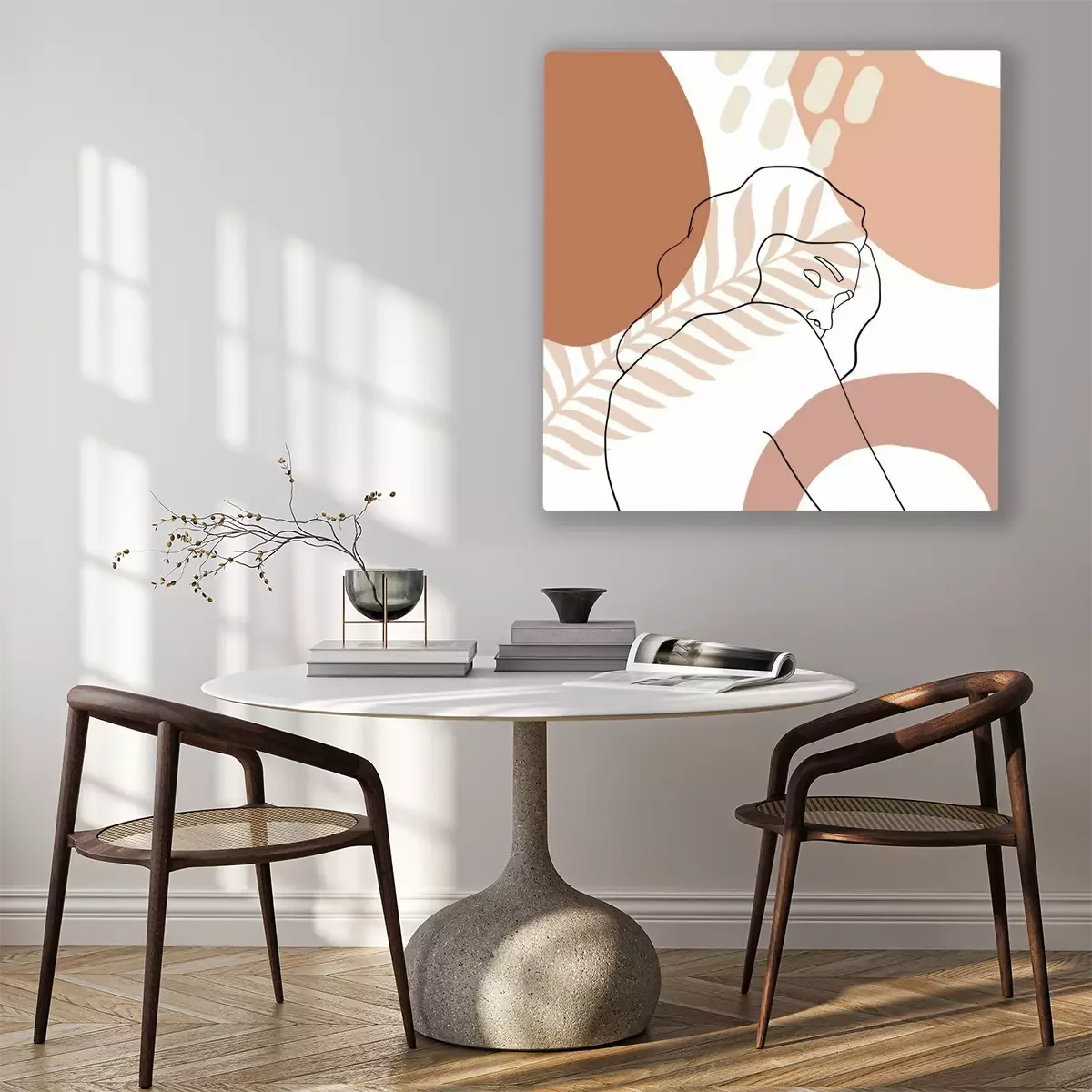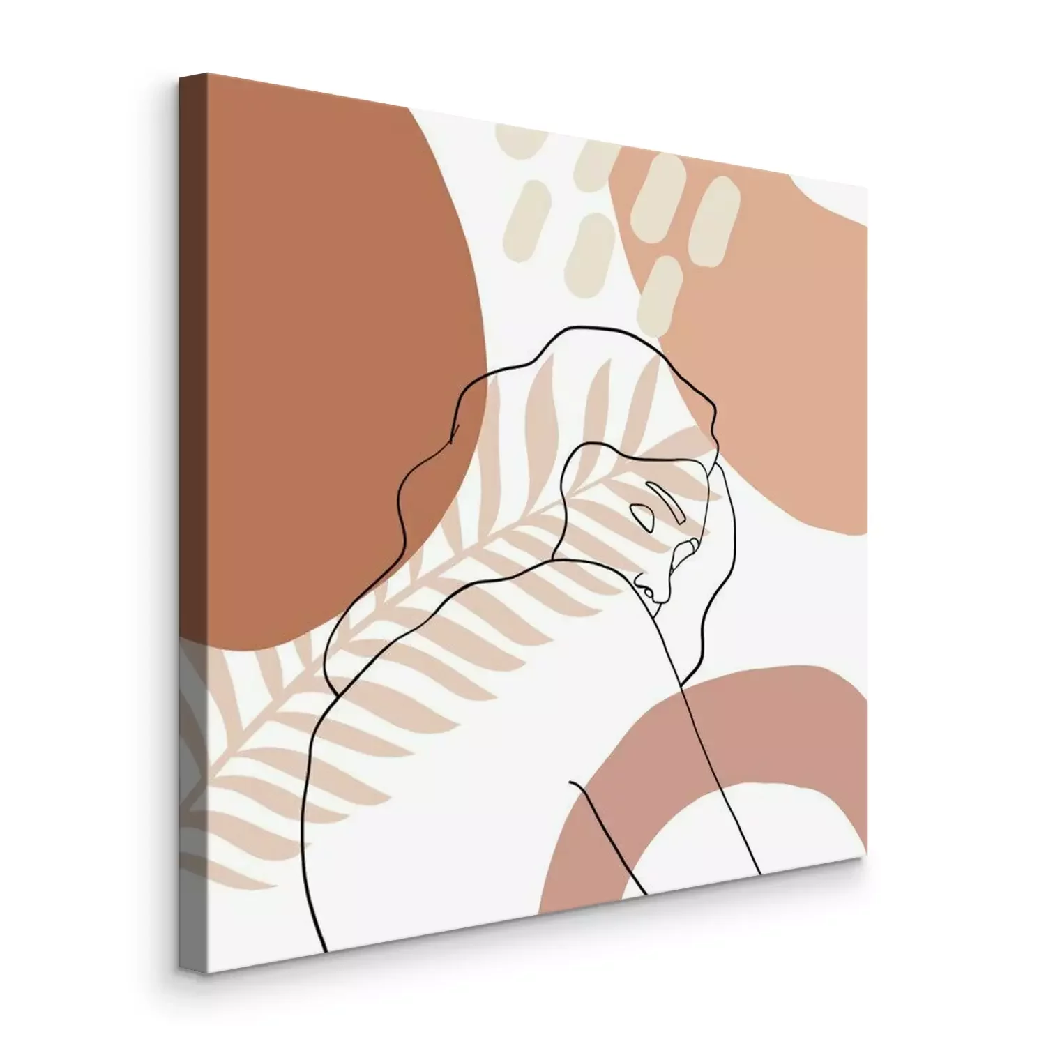 Canvas Het gezicht van een vrouw is geschilderd met één lijn en pasteltinten.