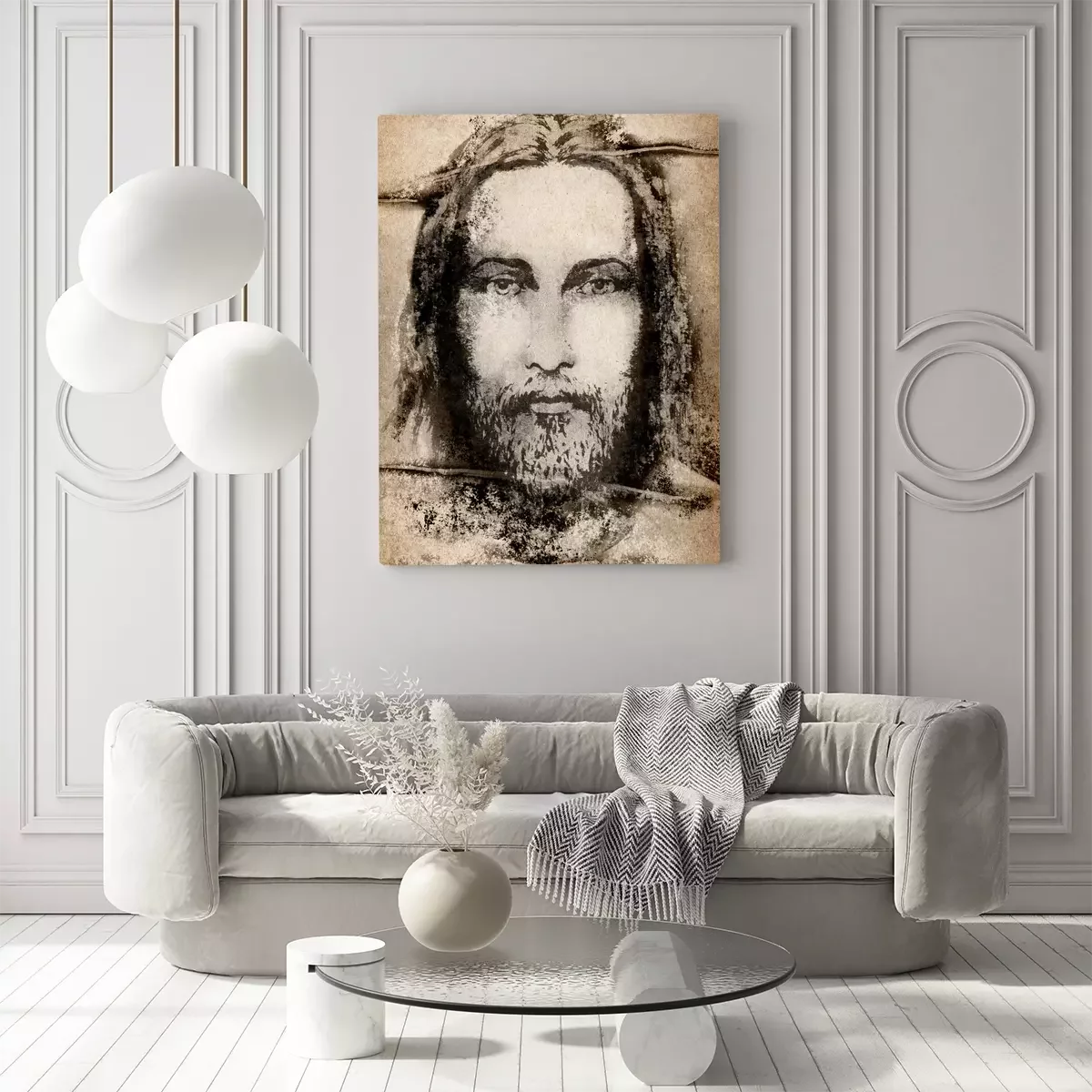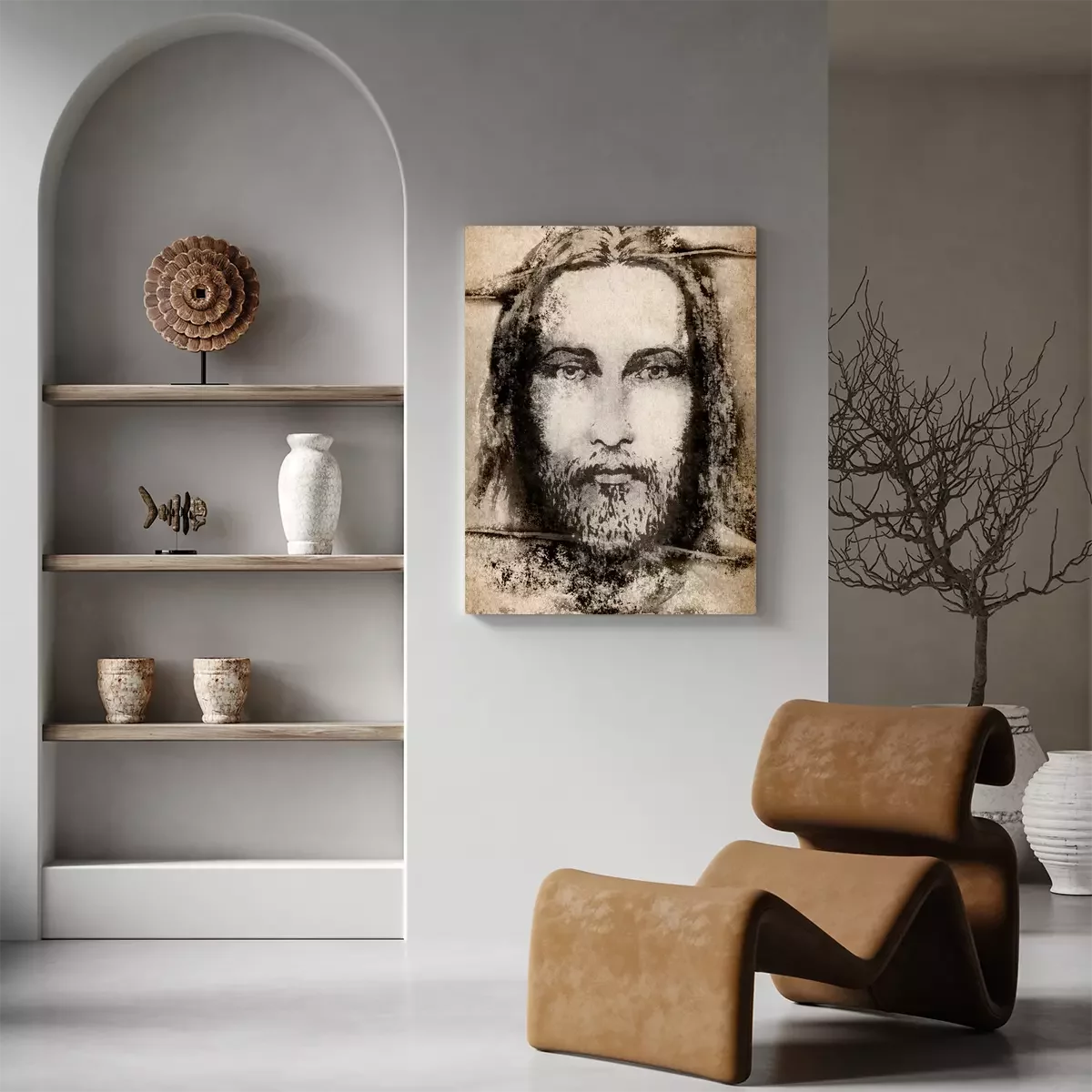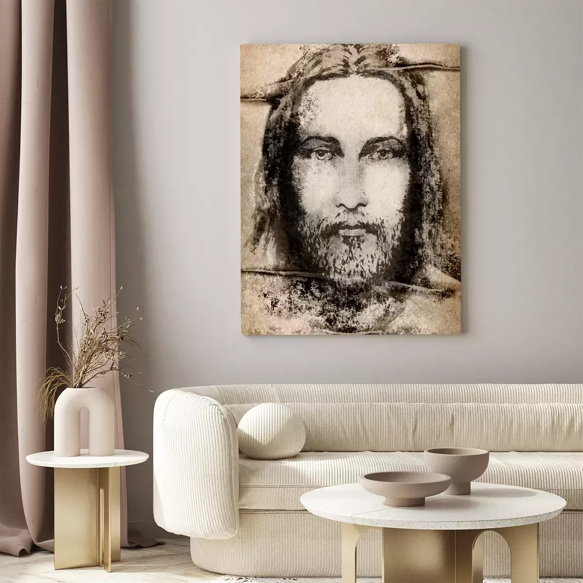 Het gezicht van jezus op de lijkwade van turijn in sepia
