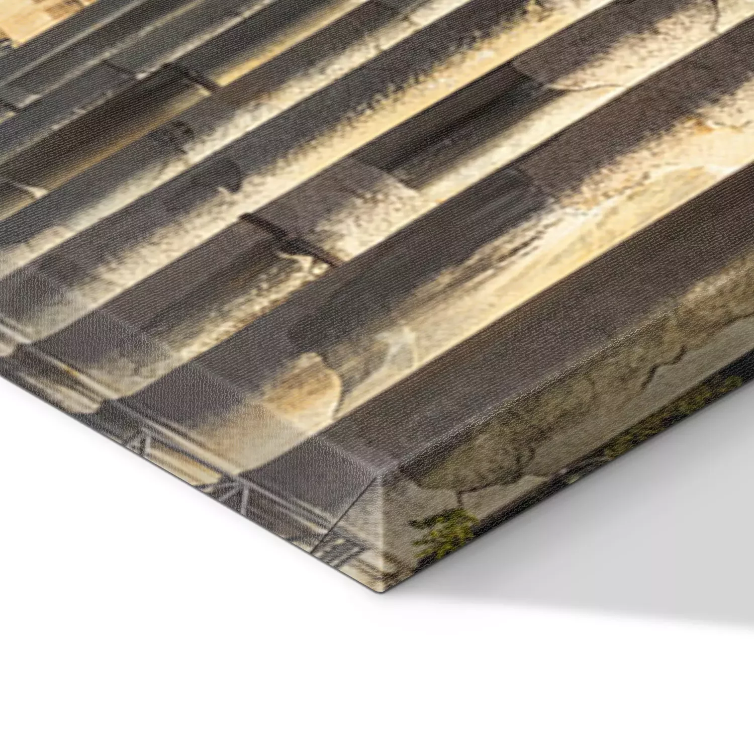 De print wordt aangebracht op hoogwaardig canvas dat op een schildersweefgetouw (spieraam) wordt gespannen. Omdat de print de zijranden bedekt, hoeft het ontwerp niet met een extra kader te worden omlijst. Wij raden ook composities aan die uit meerdere foto's bestaan en zo een coherente compositie vormen.
