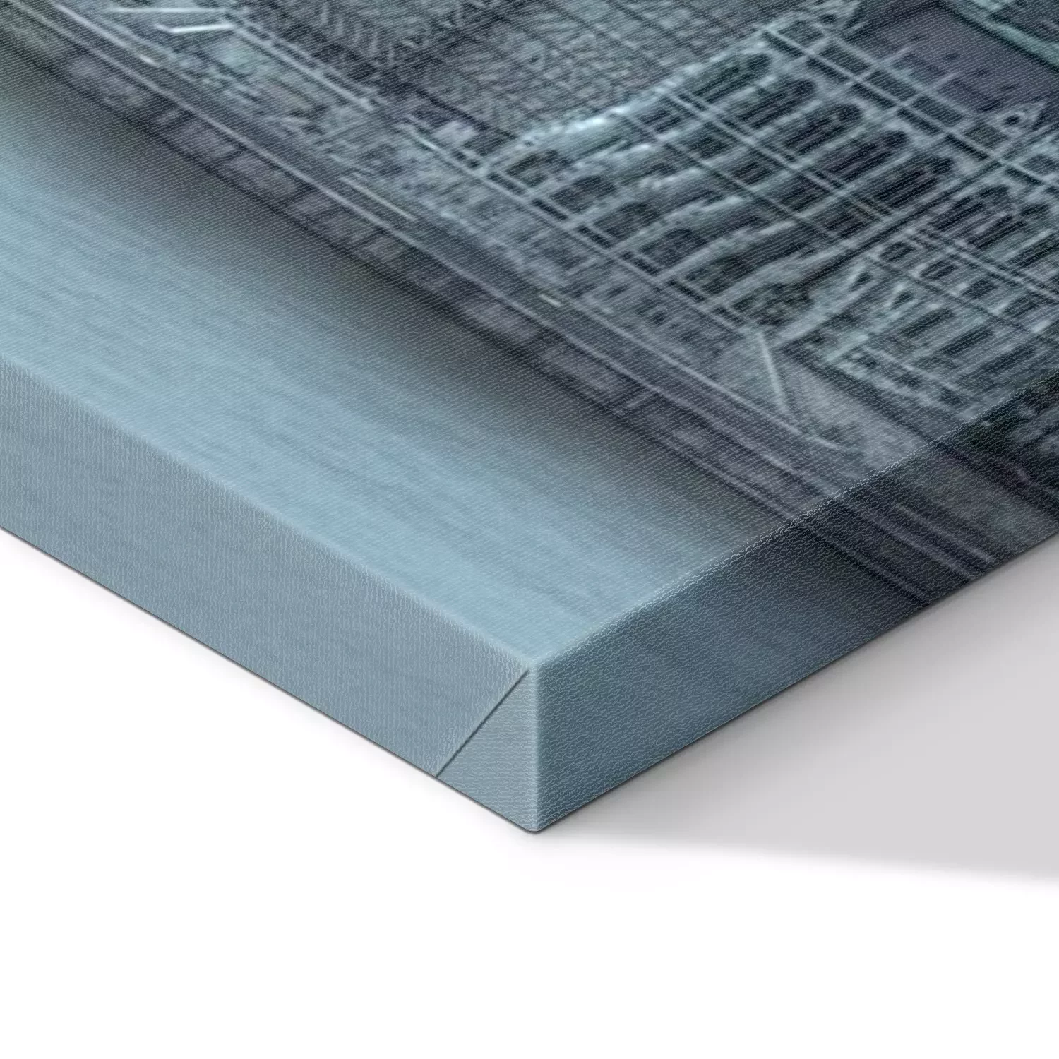 De print wordt aangebracht op hoogwaardig canvas dat op een schildersweefgetouw (spieraam) wordt gespannen. Omdat de print de zijranden bedekt, hoeft het ontwerp niet met een extra kader te worden omlijst. Wij raden ook composities aan die uit meerdere foto's bestaan en zo een coherente compositie vormen.