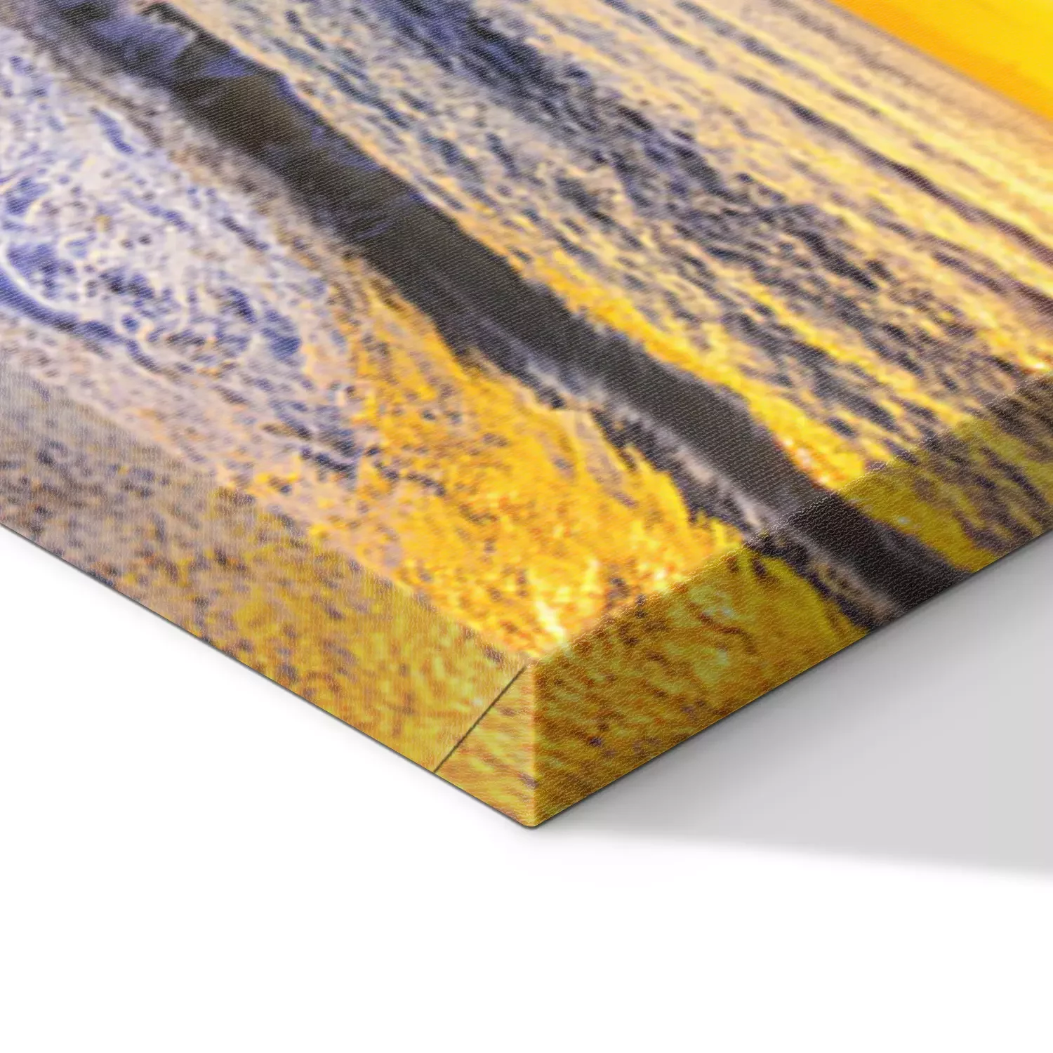 De print wordt aangebracht op hoogwaardig canvas dat op een schildersweefgetouw (spieraam) wordt gespannen. Omdat de print de zijranden bedekt, hoeft het ontwerp niet met een extra kader te worden omlijst. Wij raden ook composities aan die uit meerdere foto's bestaan en zo een coherente compositie vormen.