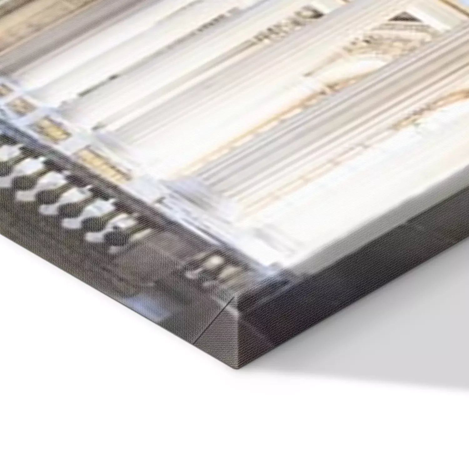 De print wordt aangebracht op hoogwaardig canvas dat op een schildersweefgetouw (spieraam) wordt gespannen. Omdat de print de zijranden bedekt, hoeft het ontwerp niet met een extra kader te worden omlijst. Wij raden ook composities aan die uit meerdere foto's bestaan en zo een coherente compositie vormen.
