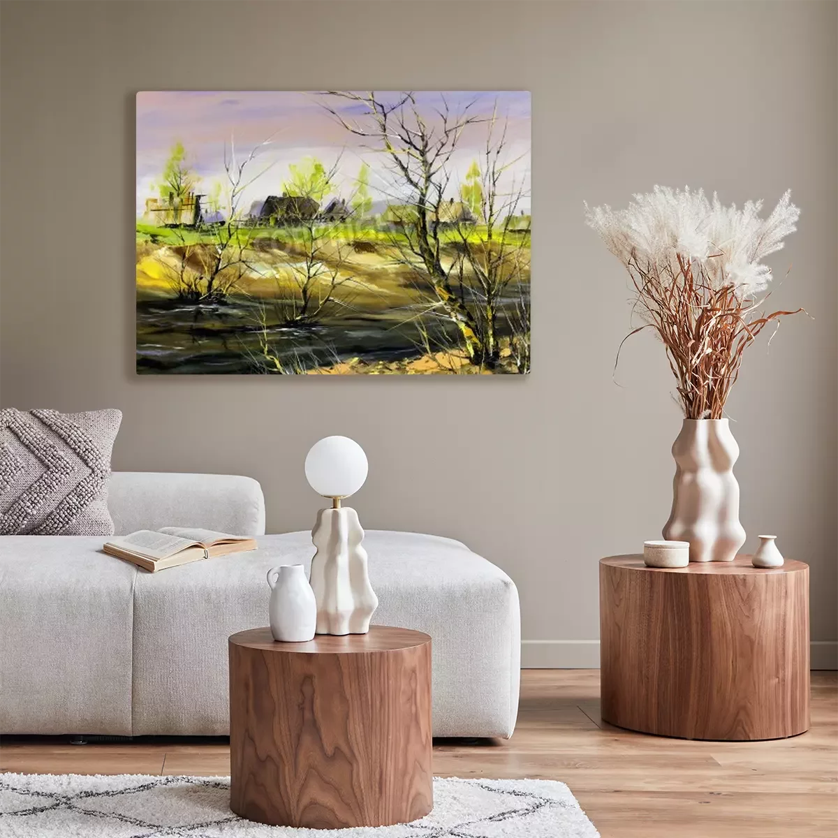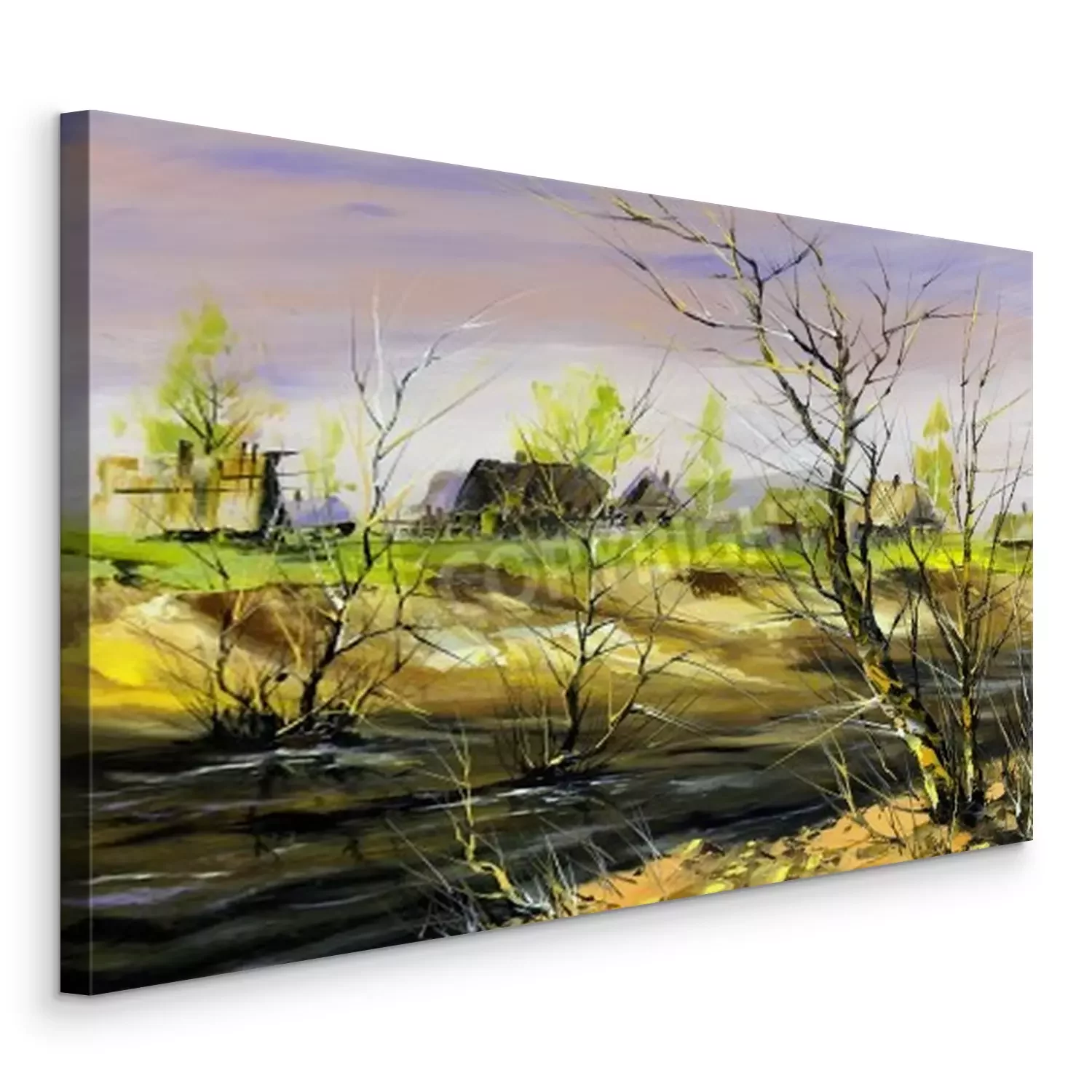 Canvas Het landelijke huis aan de oever van de rivier in de winter