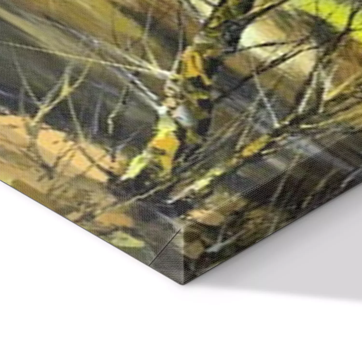De print wordt aangebracht op hoogwaardig canvas dat op een schildersweefgetouw (spieraam) wordt gespannen. Omdat de print de zijranden bedekt, hoeft het ontwerp niet met een extra kader te worden omlijst. Wij raden ook composities aan die uit meerdere foto's bestaan en zo een coherente compositie vormen.