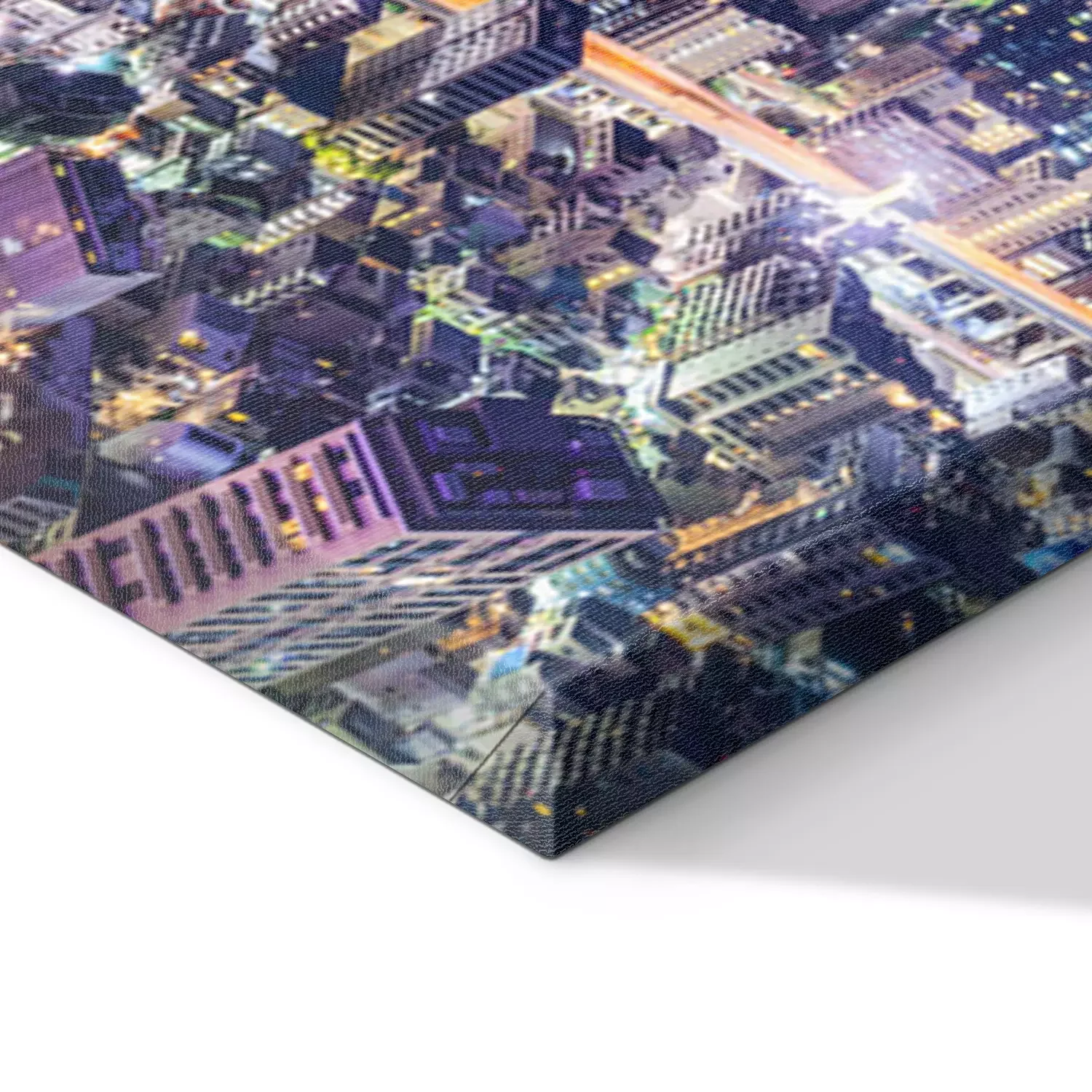 De print wordt aangebracht op hoogwaardig canvas dat op een schildersweefgetouw (spieraam) wordt gespannen. Omdat de print de zijranden bedekt, hoeft het ontwerp niet met een extra kader te worden omlijst. Wij raden ook composities aan die uit meerdere foto's bestaan en zo een coherente compositie vormen.