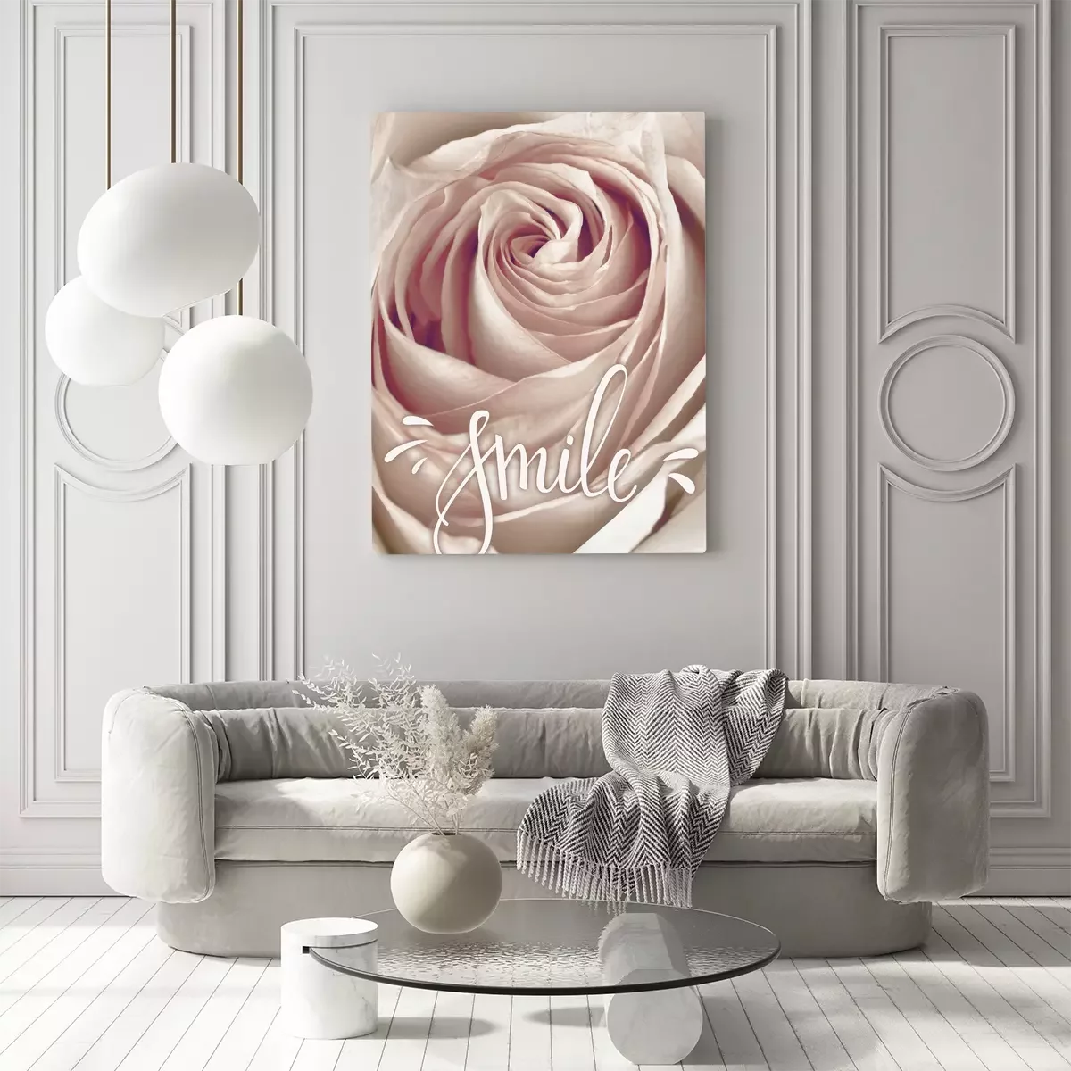 Het opschrift glimlacht op een bloemenachtergrond