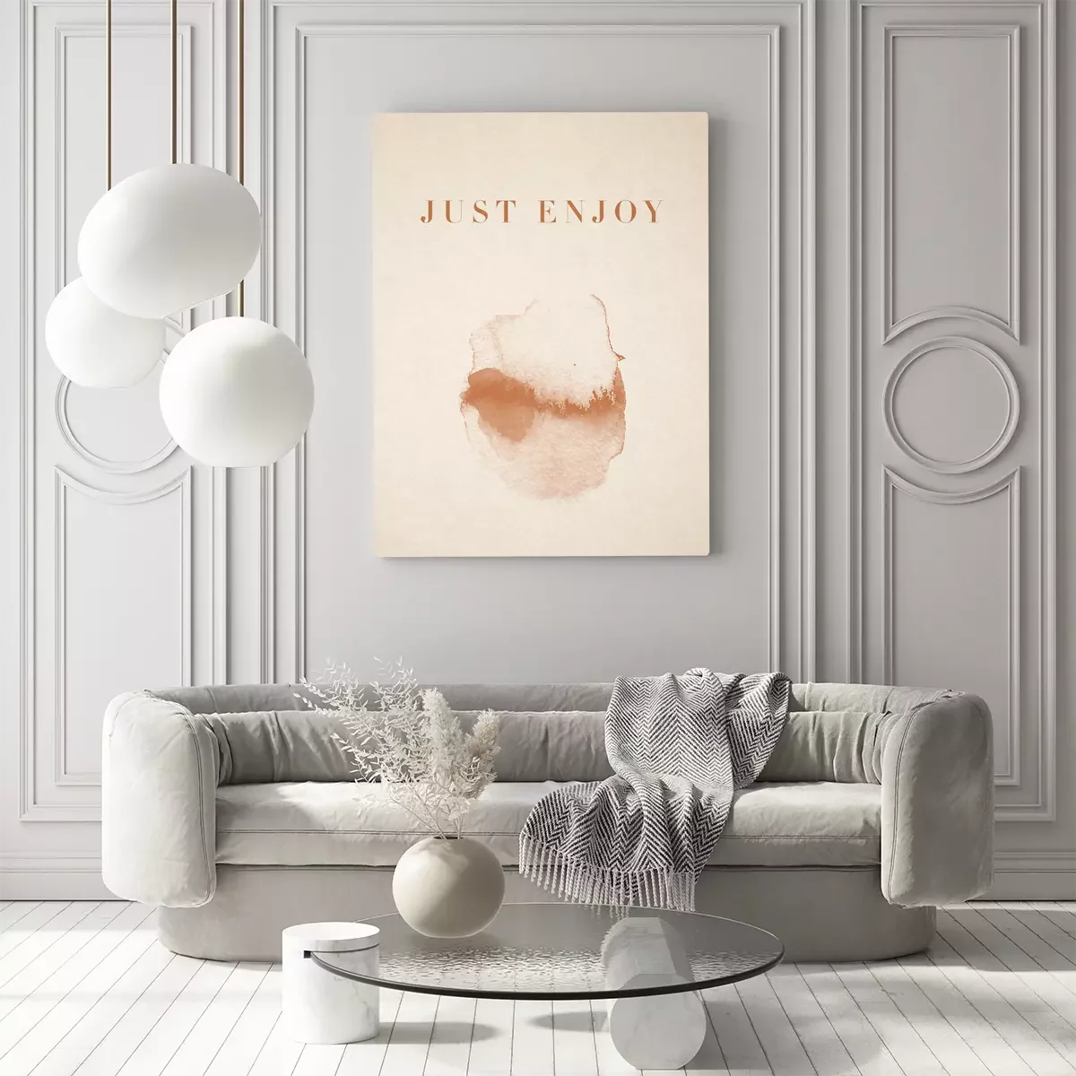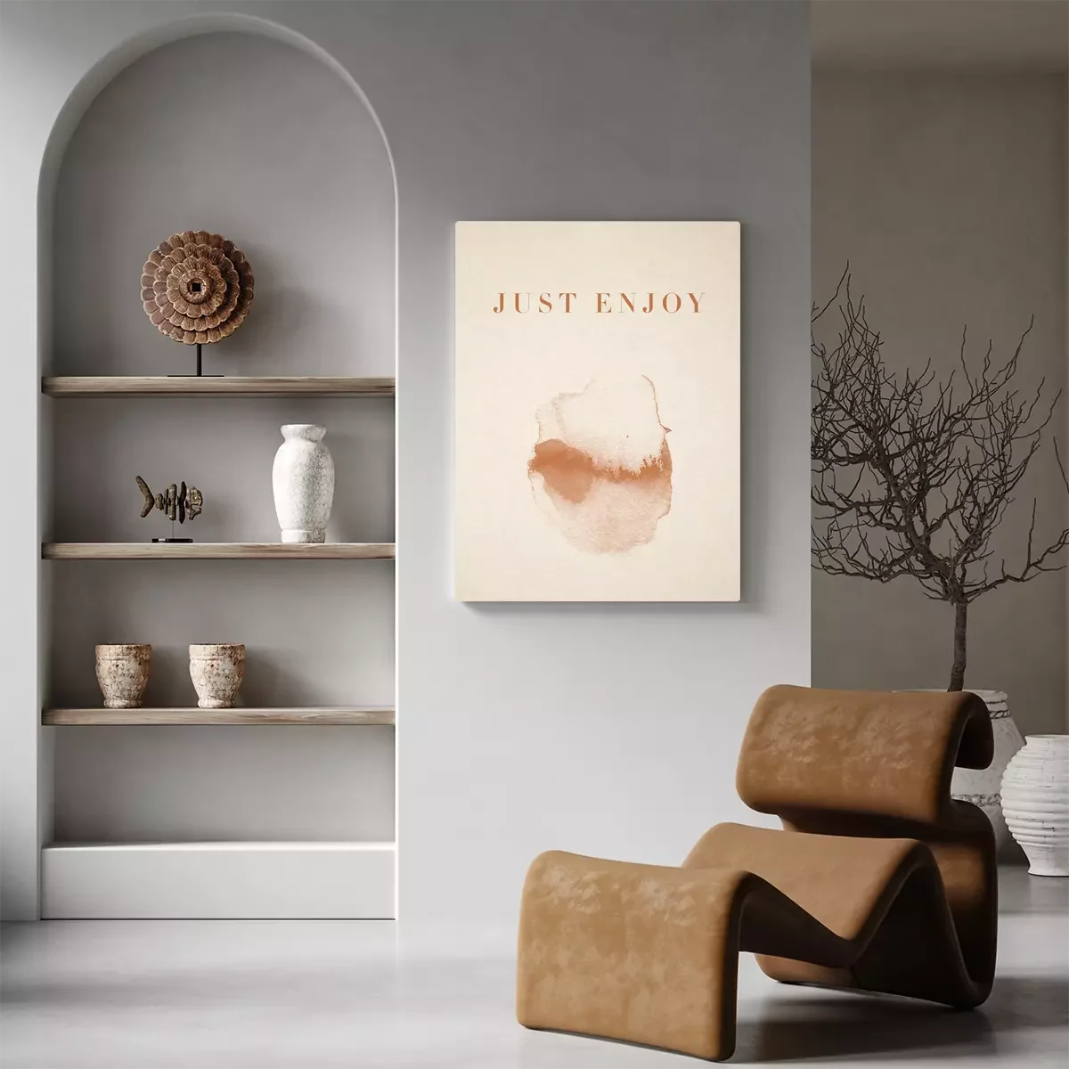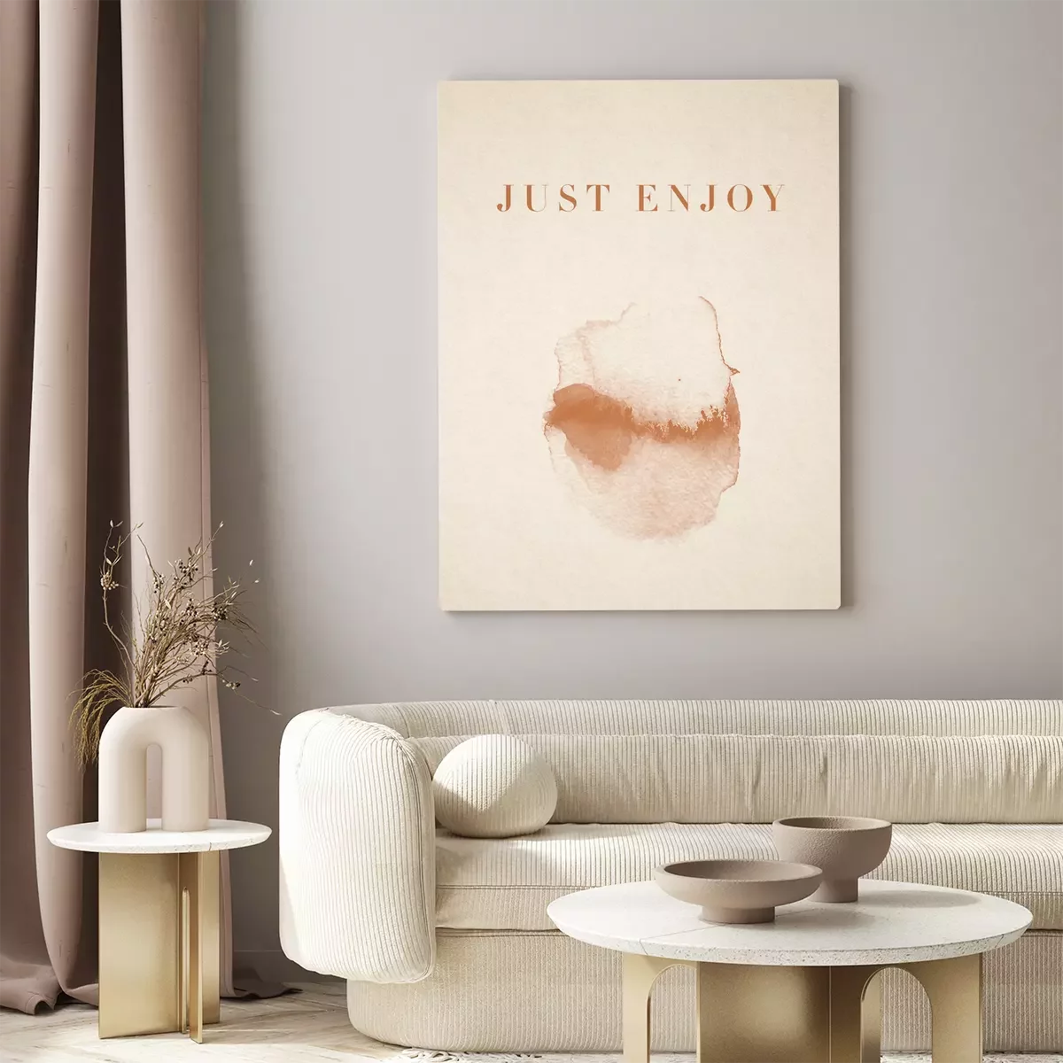 Het opschrift just enjoy met afbeeldingen op een beige achtergrond