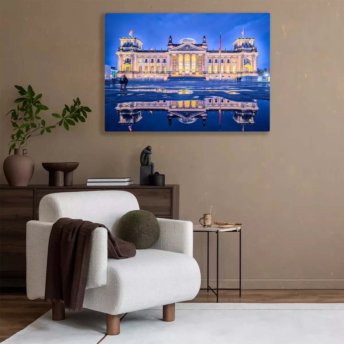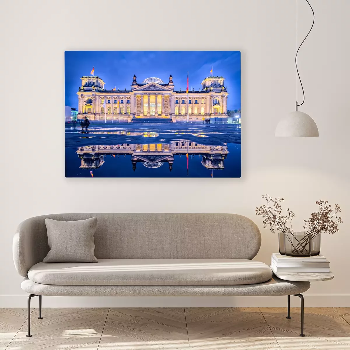 De print wordt aangebracht op hoogwaardig canvas dat op een schildersweefgetouw (spieraam) wordt gespannen. Omdat de print de zijranden bedekt, hoeft het ontwerp niet met een extra kader te worden omlijst. Wij raden ook composities aan die uit meerdere foto's bestaan en zo een coherente compositie vormen.